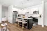 Discover quiet suburban living in this newly built two-bedroom, two-bath apartment at 54 Wyndham Road, Unit 101. Enjoy high-end finishes including quartz countertops, stainless steel appliances, and in-unit laundry. The primary bedroom features an ensuite bath for added comfort. Relax on your private patio overlooking a spacious green area, or take advantage of garage parking and central air conditioning. This boutique-style community offers a calm, small-town atmosphere while keeping you close to everything.