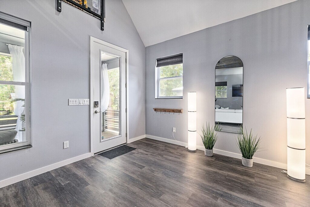 Welcome to The Secret Pool Cabana, a delightful retreat in the heart of the Oldest City. This charming home offers a solar-heated pool complete with a basketball hoop and swing chairs, perfect for relaxation and fun. The outdoor entertainment area features a dining space, corn hole, and a cozy conversation set on the front porch. Ideal for families, the property includes a fun kids' loft room and an outdoor activity shed in the backyard. The fenced-in yard is pet-friendly, and the home is just a short drive to downtown St. Augustine and a 10-minute drive to the beach. The space includes two twin beds with trundles, which may not be suitable for certain group configurations. The property allows one dog under 50 lbs, provided it is up to date on vaccinations, has flea treatment, and is potty trained. A $100 non-refundable pet fee applies, and guests are responsible for any damages caused by the pet. Additional charges will apply if dog feces is not properly disposed of, with a fee of $50 per pile. Getting around St. Augustine is convenient with your own car or a rental, as free parking is included with your stay. Rideshare apps like Uber and Lyft, as well as taxis, are readily available. Once in the city center, many shops, restaurants, art galleries, and attractions are within walking distance, making it easy to explore on foot. Quiet hours are enforced between 10 PM and 8 AM per St. Johns County ordinance. The minimum age to book is 25, and the primary guest must be present for the duration of the stay. The property is not suitable for parties or large group gatherings, and any guests outside of the reservation must be approved by the hosts prior to arrival. A security camera is installed at the front door, and tampering with it may result in reservation cancellation. No smoking or vaping is allowed on the property, and evidence of smoking will incur an additional cleaning fee. Late check-outs and early check-ins require prior approval, with a fee of $50 per hour for overstaying. Parents with young children should be aware that the home is not child-proofed.