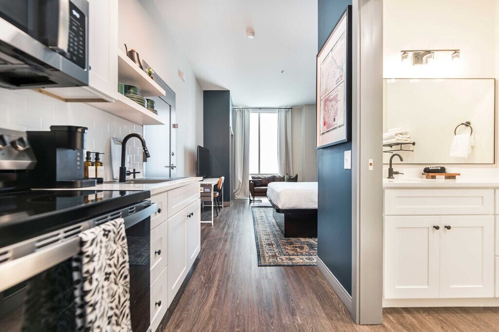 Immerse yourself in the soulful style of two musical legends with this unique 2-bedroom combination in downtown Macon. Inspired by Otis Redding’s moody vibe and Gregg Allman’s laid-back spirit, this spacious escape blends rich character with modern comfort. Floor-to-ceiling windows fill the space with light. Feel at home in this unique apartment that is perfect for music lovers and travelers seeking both style and convenience. This connected stay offers two distinct living spaces that capture the personalities of Otis Redding and Gregg Allman. The Otis-inspired room features a queen bed with soft linens, layered textures, and a moody interior design with deep tones and dramatic lighting. It includes a full kitchen with a stove, oven, refrigerator, microwave, coffee maker, cookware, and essentials. The private bathroom has a shower, towels, and toiletries. A Smart TV and high-speed Wi-Fi are provided. The Gregg-inspired room is designed with neutral accents and a relaxed, easygoing style. It includes a queen bed with soft linens, a full kitchen with a stove, oven, refrigerator, microwave, coffee maker, cookware, and essentials. The private bathroom has a shower, towels, and toiletries. A Smart TV and high-speed Wi-Fi are also included. Shared laundry facilities are available in the building on a first-come, first-served basis. Free on-site parking is available but limited and not guaranteed. Metered street parking may also be available nearby. Located right next door to Mercer Music at Capricorn, this apartment is also within walking distance or a short drive to other attractions. Mercer University is about 0.8 miles away, The Tubman Museum and the Georgia Sports Hall of Fame are 0.4 miles away, Macon City Auditorium is 0.5 miles away, Macon Coliseum is 1.5 miles away, The Rookery is 0.5 miles away, Hargray Capitol Theatre is 0.6 miles away, H&H Restaurant is 0.7 miles away, and the Otis Redding Statue and Amphitheater is 1 mile away. Smoking is strictly prohibited inside the unit, in common areas, and on the property. Parties, events, and disruptive behavior are not permitted. Pets are not allowed. Quiet hours are from 10 PM to 8 AM. A warning will be issued for noise complaints; a second complaint may result in removal from the property without refund. A minimum fee of $250 may be charged if any house rules are broken, including but not limited to unauthorized parties, smoking, unapproved pets, tampering with devices, or exceeding occupancy limits. Serious or repeat violations may result in immediate cancellation of your stay without refund. Registration Number: STVR000095 and STVR000096 [SI]