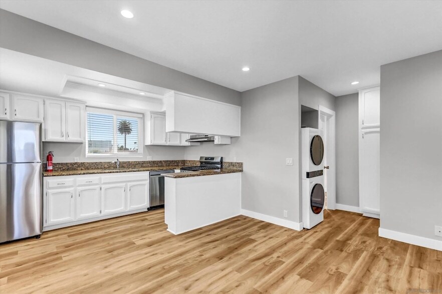 Start living the La Jolla Life in the comfort of this NEWLY REMODELED 1Bd/1Bth apartment in the heart of La Jolla Village, ONLY BLOCKS AWAY FROM THE BEACH, shops, restaurants & cafes. This modern & spacious apartment offers recessed lighting & state of the art appliances in the NEW kitchen with a full size refrigerator, a gas burning stove & plenty of cabinets for your cooking storage needs. You will also find a BRAND NEW washer/dryer & a NEW cooling/heating unit to keep you comfortable during those hot summer days or cold winter nights. The FRESHLY renovated bathroom is ready for you to wash off the sand, so that you can relax in the comfort of the peaceful southwesterly facing bedroom that boasts 2 large windows which bring in plenty of natural light. You won't have to worry about parking as you will have your very own spot inside an enclosed garage, just steps from your door. Finally this is a quiet corner unit on the 2nd floor of a charming small 2 story building, so you don't have to worry about a heavy footed noisy neighbor upstairs. The magical charm of the Village awaits your arrival to start living the La Jolla Life Today!