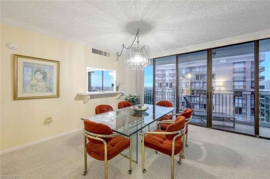 The best of beach front living, desirable SW exposure 3 bedroom, 3 full baths, great room with spectacular views, large island kitchen, breakfast room with floor to ceiling windows, spacious Primary Suite with 2 walk-in closets, separate vanities, shower & soaking tub. Guest rooms are equally spacious. Large foyer with sitting area. Washer and Dryer in unit, Covered assigned parking. Community features include pool, spa, shuffle board, secured beach access, 2 exercise rooms, community room with wet bar & full kitchen, outside grill area with dining counter & tables and tennis. The Chalet is a perfect location on one of Florida's best beaches, and walking distance to some of Marco Island's best restaurants at the 5-star JW Marriott, Hilton, Marco Beach Ocean Resort, and Marco Walk.