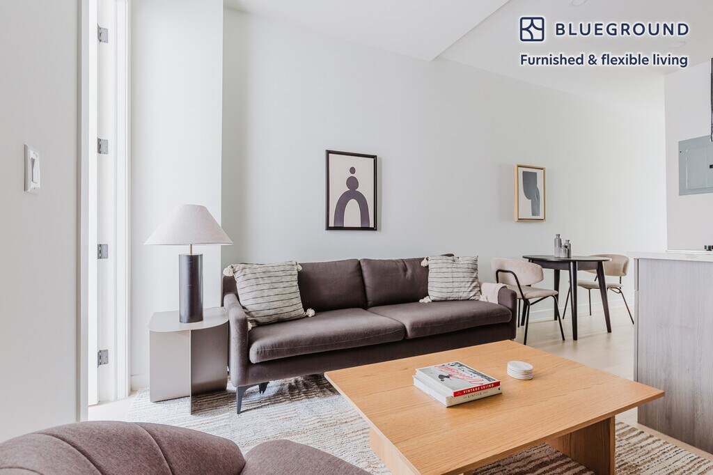 Feel at home wherever you choose to live with Blueground. You’ll love this sophisticated Williamsburg furnished two bedroom apartment with its modern decor, fully equipped kitchen, and spacious living room. Ideally located, you’re close to all the best that New York has to offer! (ID #NYC1679) The advertised rate of $3,950/month is the lowest available price, based on a 2 month(s) and 29 day(s) stay with a move-in date of November 6, 2025. If you’re looking for a 1-year stay, the rate is $4,840/month. Rates vary depending on the duration of stay, season, and other parameters. For exact pricing and additional pricing components, please visit our website and enter your desired move-in and move-out dates. The rate is applicable when billed upfront; it can be higher if billed in multiple payments. Brokers are welcome to reach out. Were you looking for an unfurnished lease? Try Blueground instead and upgrade from unfurnished to furnished living: - Furnished at rates comparable to unfurnished - No setup or furniture costs - save thousands - Move-in ready - save time, just bring your suitcase Designed with you in mind Gorgeous furniture, fully equipped kitchen, smart TV, and a premium wireless speaker are just a few of the amenities you’ll find inside this two bedroom apartment. Ideally located in New York, you’ll find a lot to love outside as well. When you’re ready to relax, you’ll be happy to discover every Blueground bedroom comes with superior quality mattresses, luxury linens, and cozy towels. We handle everything so you can simply show up and start living. This apartment also offers in-apartment laundry. Sleeping arrangements Queen Bed, 63in/160cm Queen Bed, 63in/160cm Amenities Building amenities unique to this two bedroom apartment include an on-site: - Dryer - Washing machine - Pets allowed Arrival and ongoing support The entire apartment is yours to enjoy! Throughout your stay, you’ll have access to our Client Experience team through the Blueground App. You can schedule additional cleanings, submit maintenance requests, and view our neighborhood recommendations with just a few taps. We’ll share all details upon confirmation of your stay. Ideally Located This furnished apartment is situated in Williamsburg, known as Brooklyn’s creative outlet. Residents vary from artists and young professionals working in the media or entertainment industries to families. Williamsburg Bridge is great for long strolls, running or biking. Over the weekend, visit Bedford Avenue, which is constantly buzzing with trendy boutiques, fine dining, outdoor day parties and a thriving music scene. East River State Park also offers a great sunset over the Manhattan skyline. Embarking on the L train, you can be in the heart of Manhattan in just a few minutes. Also the M and J trains make it easy to get to other downtown neighborhoods. Other things to note This Blueground apartment has flexible lease options, allowing you to book it for one month, a year, or more. Pets are welcome, though weight limits and breed restrictions apply and may incur fees. Please keep in mind that this is a walk up building. Brokes CYOF. We take great pride in ensuring every photo displayed is shot in our own units with our actual furnishings. That said, we regularly refresh our decor and furniture arrangement, which may differ from what’s pictured.