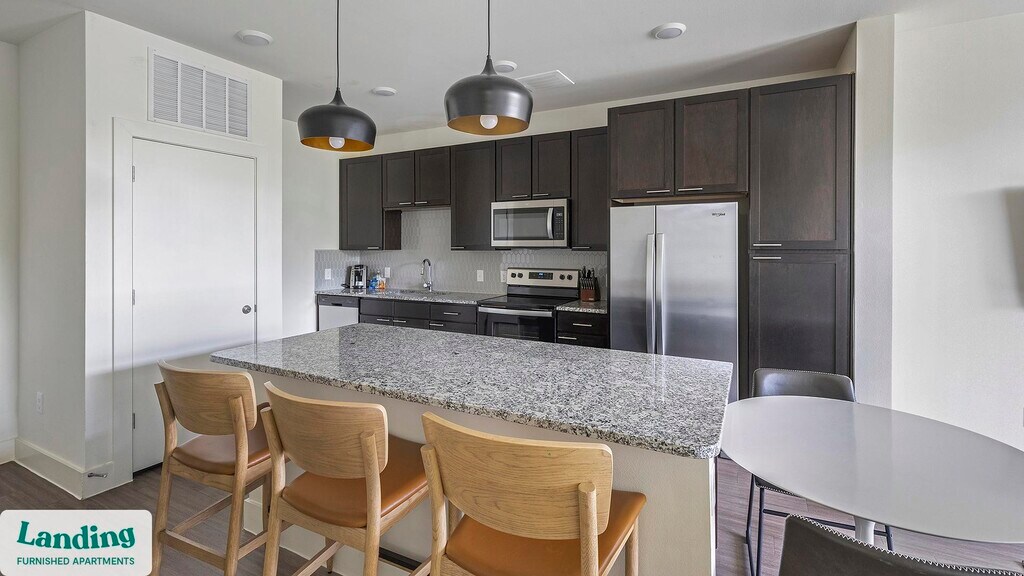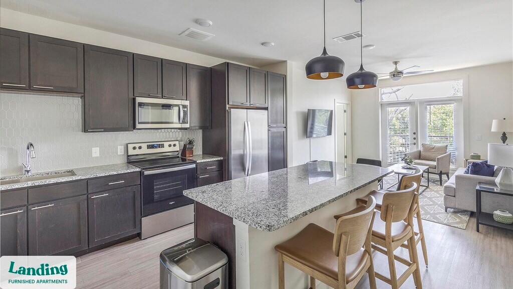 Landing is a top-rated, fully furnished apartment network with thousands of homes across 250+ U.S. cities. With premium amenities, a mobile app to manage your stay, and 24/7 support. Our apartments have everything you need for monthly and longer stays. 6-Month+ Stay base rent: starts at $2317/mo 12-Month+ Stay base rent: starts at $2220/mo Landing's apartments at The Standard River District are designed for comfortable, easy living, with the ability to stay as long as you like. All Landing apartments include: - Fast Wi-Fi - Stylish furnishings - Fully-stocked bathroom - Smart TVs - Comfortable bed - Professionally cleaned - Guest support Stay longer for cheaper! The longer you stay, the bigger your discount. Price advertised is for a 12-month stay, including all utilities and fees, and may vary based on availability. We manage multiple units at this property. While all feature a similar style and furnishings, the layout and specific design elements may vary slightly from the photos provided. Some of the nitty-gritty: a background check and proof of income are required; we're completely smoke-free; pet-friendly options are available; parking is subject to availability.