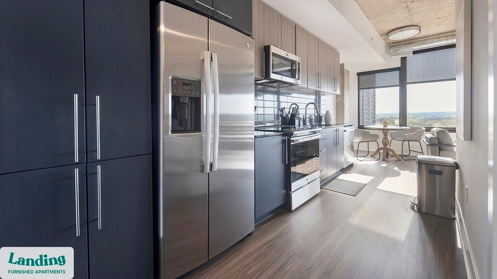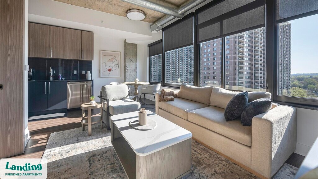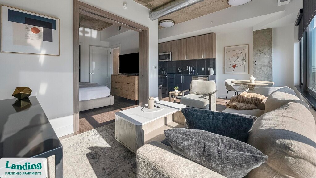 Landing offers flexible lease terms from weeks to months. Please always visit our website or contact us for the latest pricing & availability. Stay longer, save more: 6-Month Minimum base rent: starts at $2901/mo 12-Month Minimum base rent: starts at $2584/mo Landing offers flexible leases across a network of over 35,000 fully-furnished apartments throughout 375+ cities so you can rent on your terms, practically anywhere, and avoid the hassle of paying deposits or application fees. Visit to learn about all the benefits of a Landing membership, see our competitive up-to-date pricing, explore available apartments, take virtual tours, and make reservations online without jumping through traditional rental hoops. Landing's apartments at Three Collective are designed for comfortable, easy living, with the ability to stay as long as you like. Experience living with Landing Every apartment is outfitted with all the modern essentials including: custom-designed furnishings, a fully-equipped kitchen with deluxe stainless steel appliances, a gourmet coffee maker, premium linens, Smart TVs, and incredibly fast, reliable internet for working from home. When you live with Landing, you'll enjoy a hassle-free experience with the added benefit of 24/7 access to our dedicated member experience team. Some of the nitty-gritty: a background check and proof of income are required; we're completely smoke-free; bundled utility packages and pricing vary based on length of stay; pet-friendly options available; listed price reflects a 12-month minimum stay.