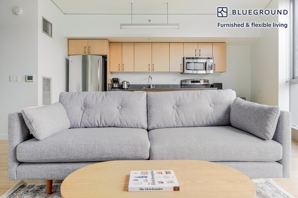 Discover the best of Seattle, with this one bedroom apartment in Pioneer Square. It’ll be easy to simply show up and start living in this beautifully furnished apartment with its fully equipped kitchen, cozy living room, and our dedicated, on-the-ground support. (ID #SEA926) The advertised rate of $1,700/month is the lowest available price, based on a 1 month(s) and 17 day(s) stay with a move-in date of December 21, 2025. If you’re looking for a 1-year stay, the rate is $2,310/month. Rates vary depending on the duration of stay, season, and other parameters. For exact pricing and additional pricing components, please visit our website and enter your desired move-in and move-out dates. The rate is applicable when billed upfront; it can be higher if billed in multiple payments. Brokers are welcome to reach out. Were you looking for an unfurnished lease? Try Blueground instead and upgrade from unfurnished to furnished living: - Furnished at rates comparable to unfurnished - No setup or furniture costs - save thousands - Move-in ready - save time, just bring your suitcase Designed with you in mind Thoughtfully designed with bespoke finishes, modern furnishings, and a fully equipped kitchen, you’ll enjoy that “I’m home” feeling with this Blueground apartment. Whether you’re lounging in your beautiful living room streaming the latest and greatest entertainment on the smart TV or premium wireless speaker, or getting some well-earned rest on the superior quality mattress with luxury linens, you’ll fall in love with everything this Pioneer Square apartment has to offer. This apartment also offers in-apartment laundry. Sleeping arrangements Queen Bed, 63in/160cm Amenities Building amenities unique to this one bedroom apartment include an on-site: - BBQ Area - Dryer - Elevator - Game room - Washing machine - Lounge - Media room - Parking - Pets allowed - Rooftop BBQ Arrival and ongoing support The entire apartment is yours to enjoy! Throughout your stay, you’ll have access to our Client Experience team through the Blueground App. You can schedule additional cleanings, submit maintenance requests, and view our neighborhood recommendations with just a few taps. We’ll share all details upon confirmation of your stay. Ideally Located This furnished apartment is located in Pioneer Square, known as Seattle’s first neighborhood.Internet companies, art galleries, coffee shops, bookstores, and trendy bars fill the Romanesque buildings. After a long day at the office, many like to unwind in secluded Waterfall Garden Park or grab dinner to go from one of the many food trucks at Occidental Square. The first skyscraper in Seattle, Smith Tower, is also located here, offering a 365-degree view of downtown. This historic neighborhood is accessible via bus, train, light rail, streetcar, and even water taxi or ferry. However, it's also considered to be one of the most walkable areas in all of Seattle. Other things to note Building amenities may have an extra cost. This Blueground apartment has flexible lease options, allowing you to book it for one month, a year, or more. Pets are welcome, though weight limits and breed restrictions apply and may incur fees. Parking is offered based on availability and is subject to a fee. We take great pride in ensuring every photo displayed is shot in our own units with our actual furnishings. That said, we regularly refresh our decor and furniture arrangement, which may differ from what’s pictured.