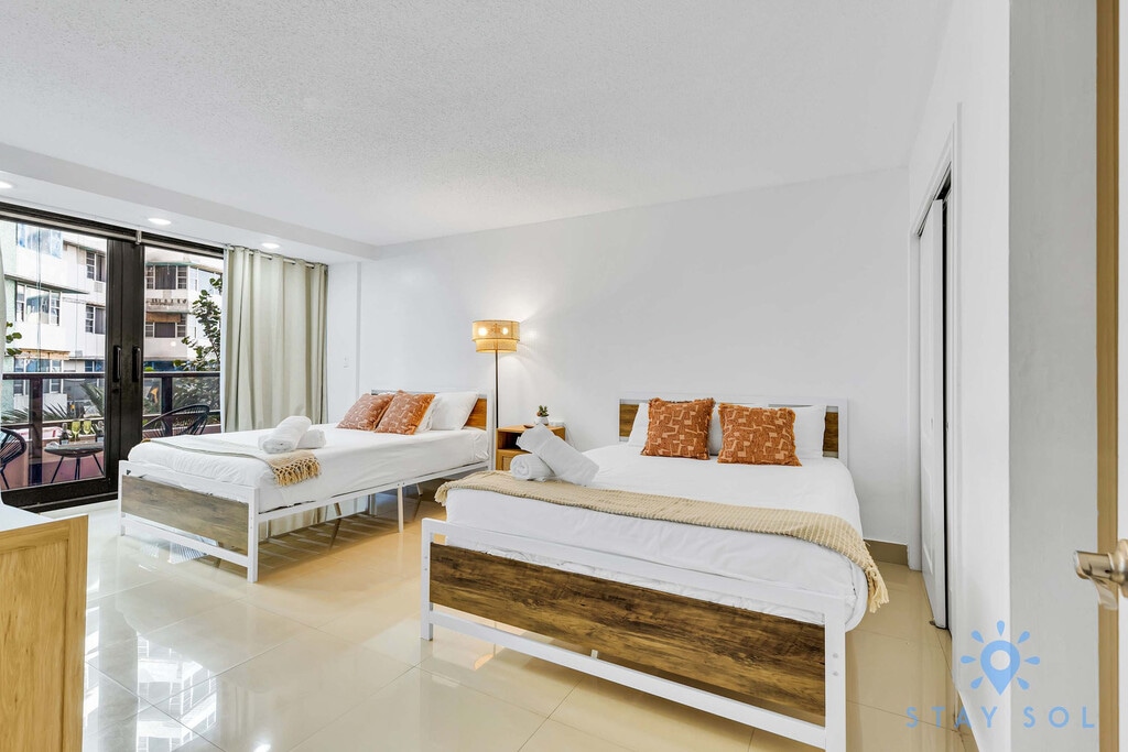 Feel at home in this modern, large apartment in Miami Beach, featuring 2 bedrooms and 2 bathrooms. The master bedroom offers 2 queen beds, while the second bedroom includes 2 twin beds. Enjoy the convenience of a full kitchen, living, and dining area, along with a huge swimming pool, front desk, and security. Direct beach access is available by taking the elevator to the ground floor and walking through the pool area to reach the ocean. This apartment boasts a modern style with a spacious layout, including a full kitchen, living, and dining area. The master bedroom is equipped with 2 queen beds, and the second bedroom has 2 twin beds. The property offers a huge swimming pool, front desk, and security. The beach is easily accessible, providing a seamless transition from the apartment to the ocean. The property includes direct beach access, eliminating the need to cross any streets, making it safe for children. A cleaning fee is applied to ensure the apartment is spotless upon arrival, with fresh towels provided. Located on Collins Avenue in the Mid Beach/Millionaires Row area of Miami Beach, this condominium offers incredible ocean, bay, and city views with year-round breezes. Just steps from the beach and a short drive to South Beach, the neighborhood is highly desirable. Enjoy ocean access boating from the Indian Creek docks and proximity to Lincoln Road and the Fontainebleau Hotel. Public transportation is convenient with a bus station in front of the building, and ride-sharing apps like Uber and Lyft are readily available. The apartment follows strict cleaning and sanitization protocols by the CDC, ensuring cleanliness and safety. The host lives nearby and is available to assist while respecting your privacy. No need to clean the apartment upon departure, as the cleaning fee covers this service. The apartment is equipped with a workspace and high-speed Wi-Fi, making it ideal for remote work and staycations. A laptop computer is not included. Registration Number: 2333563 [SI]