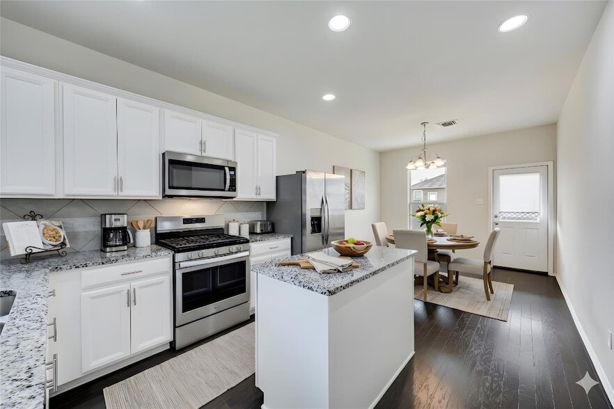 Move-in ready and perfectly located, this inviting 3-bedroom home with a French-door study offers comfort, style,and convenience just minutes from historic Downtown Georgetown. Only a 6-minute stroll to the sparkling communitypool, sport courts, playgrounds, parks, and more, you ll love all the community amenities Carlson Place has to offer.Step into the bright, open living room that flows effortlessly into a beautifully designed kitchen the perfect space forhosting or cooking with ease. With generous counter space, sleek finishes, and a full-size LG refrigerator, the kitchen istruly holiday-ready and ideal for prepping feasts, storing seasonal treats, or gathering with friends and family. Theprivate primary suite offers a peaceful retreat, while the secondary bedrooms provide plenty of space for guests, kids,or hobbies. Outside, the fully fenced backyard is great for unwinding, grilling, or giving pets room to play. Just minutesfrom Round Rock Premium Outlets, IKEA, H-E-B plus!, and Wolf Ranch Town Center s vibrant mix of dining, shopping,and entertainment. Commuting is easy with direct access to I-35 and SH-130, offering smooth travel across the Austinarea.