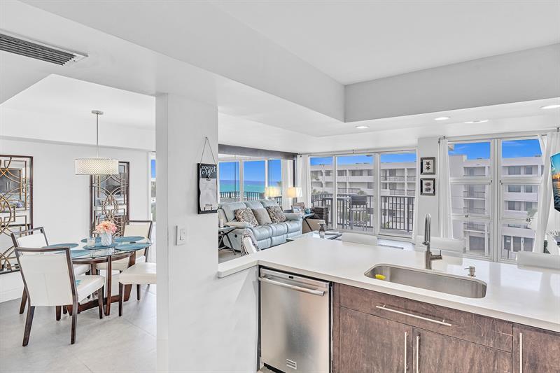 Stunning 2 bed, 2 bath condo in Silver Thatch Atlantic with breathtaking ocean and Intracoastal views. This bright, modern unit features new 2024 appliances, beautifully remodeled floors, and elegant furniture. The open plan layout includes a spacious living and dining area, leading to two balconies with incredible views. The updated kitchen boasts gray cabinets and sleek countertops. The primary bedroom offers a fantastic ocean view. Located on the west side of A1A, enjoy classic Florida vibes with easy access to the fishing pier and jogging paths.