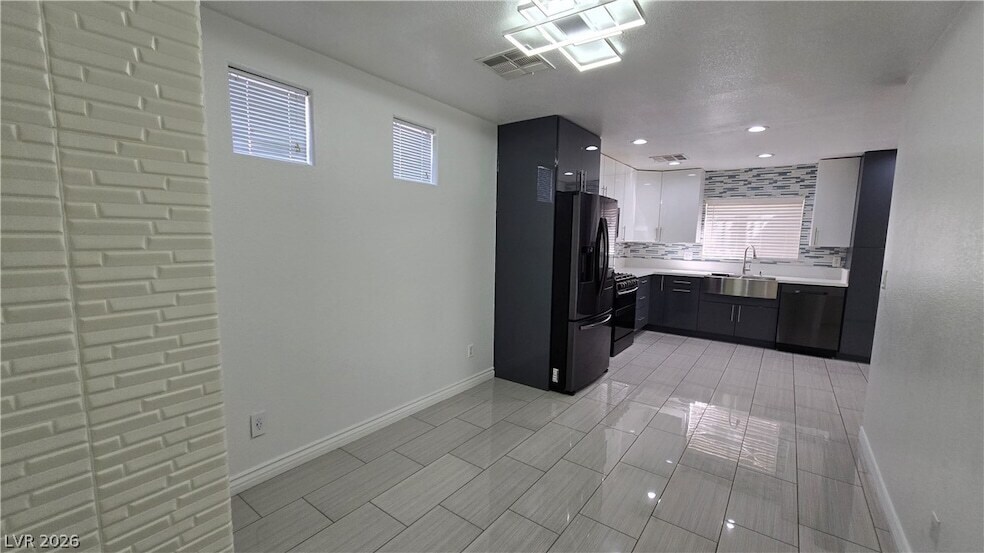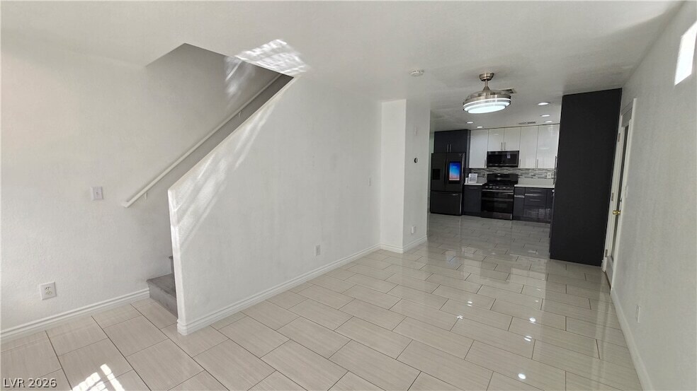 Move-in ready 3BD/2.5BA home in gated Wexford Village at Sunrise near Nellis Air Force Base. This updated 1,188 sq ft home features a functional layout, refreshed interior/exterior paint, porcelain tile flooring downstairs, and wood laminate on the stairs and second floor. Upgraded kitchen includes ceiling-height custom cabinets, quartz countertops, tile backsplash, recessed lighting, and stainless steel appliances. Backyard offers cement patio and covered gazebo for added outdoor living space. Additional features include smart thermostat, 1-car garage, and 1-car carport. Community amenities include 3 parks plus convenient access to shopping, dining, and major commuter routes.