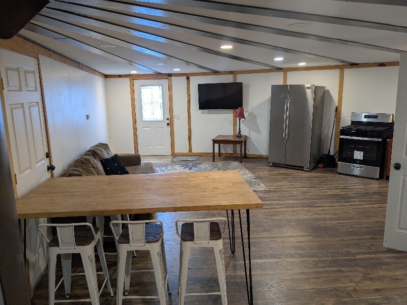 Property Id: 2065672 This is a fully furnished three bed one bath unit. It is 8 minutes from the Fibrebond/Eaton facility. It is built in a repurposed water tank so the exterior walls are round. It is located in a property that has cabins apartments and RV pads. There are two laundry facilities on site and a bath house. There is a rooftop deck with a hot tub that can be used if you schedule with the property manager. The location is quiet and next to a farm with excellent views. Tenants are responsible for electricity, other utilities are paid for by the landlord.