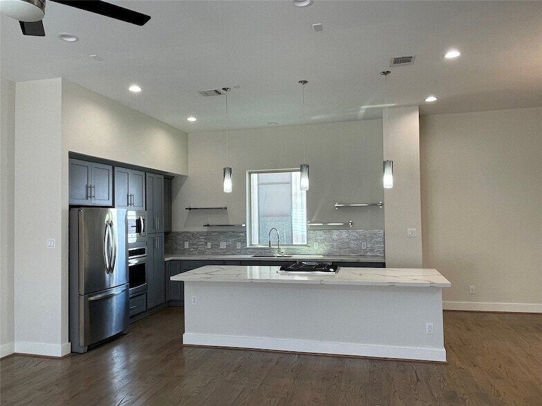 Beautiful Town home In the heart of the Heights/Washington area. This Beauty Features a 4 stories stand alone building. A guest Primary room and Primary bath on the first floor. A modern open concept Kitchen /dining ,spacious living and a very cute Balcony on the second floor. The third floor features a primary bedroom suite with its own spacious primary bathroom as well as a third bedroom. 4th floor is the breathtaking views of the city from the spacious Balcony perfect for family gatherings and morning coffee. Location Location location!!! This beauty has been freshly painted and very well maintained .