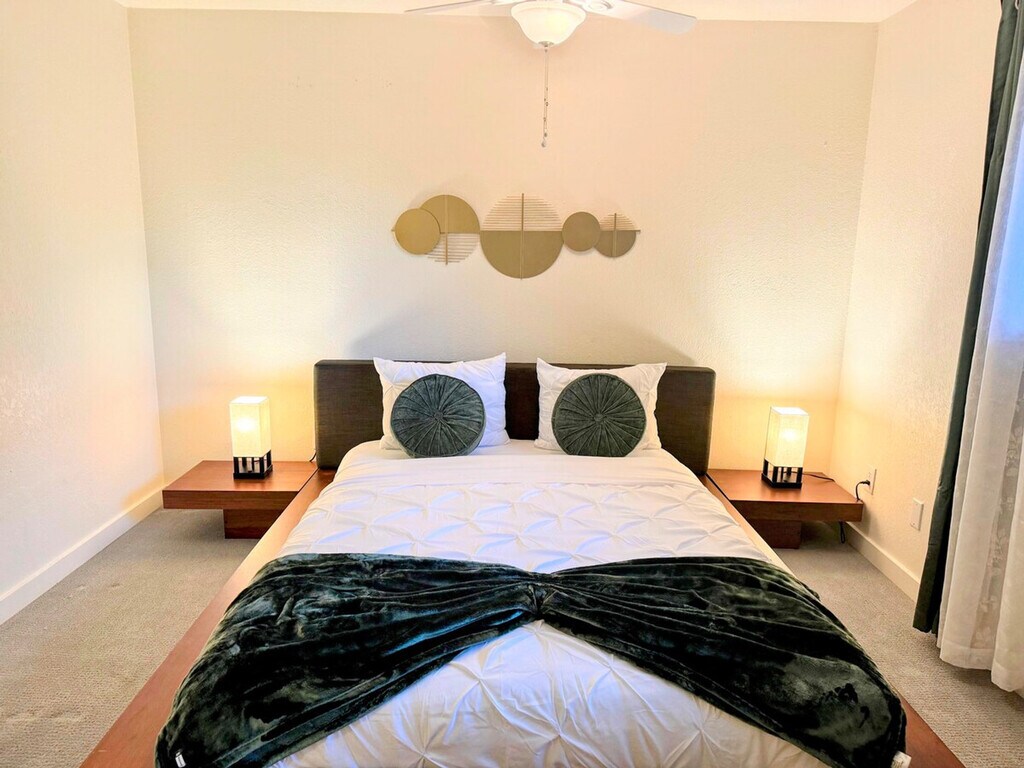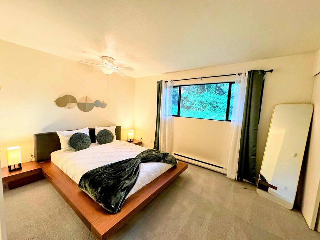 Feel at home in this charming 2-bedroom, 1.5-bathroom townhome located in the heart of Lynnwood. Enjoy full access to the entire townhome, including a private backyard. Treat yourself to a soothing session in your private cedar sauna. The townhome also features an outdoor firepit, perfect for cozy evenings. The kitchen is fully equipped. Fast Wi-Fi, a smart TV, a washer and dryer are available. Only 8 minutes from Alderwood Mall, you'll be close to shopping, dining, and entertainment. A bus stop just 0.2 miles away makes getting around easy, and you’ll have 2 private parking spots for stress-free access. Check-in is tech enabled.