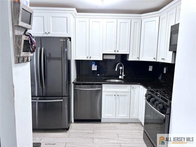 Fully Furnished Home (Condo) for Rent - 2 Beds, 1 Bath. Open-concept living space featuring a gourmet kitchen with elegant granite countertops, a matching granite backsplash, and sleek black stainless steel appliances including a refrigerator, microwave, gas stove/oven, dishwasher, and range hood. Enjoy meals at the charming solid wood breakfast nook dining set. With stacked Washer & Dryer Set with Front Load Washer and Gas Dryer in White. Large living room with TV, sofa, and loveseat. In the box is a Queen frame upholstered drawer bed for master bedroom. 2nd bedroom includes a twin upholstered bed frame with small TV. Throughout the condo is recessed lights and carpeting through the living and bedrooms with large closets . As well as a beautifully upgraded bathroom. One assigned parking spaces. Tenants responsible to pay all Utilities. Situated just minutes from NYC bus stop, major highways, transportation, shopping, restaurants, parks, and top-rated schools, this home offers the perfect blend of comfort, space, and location