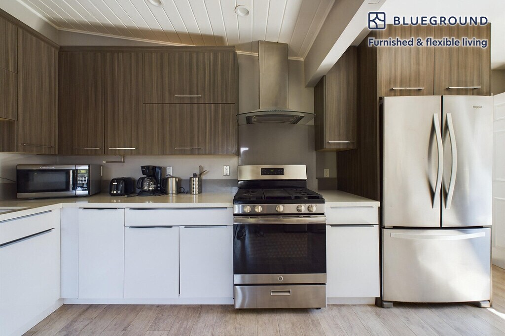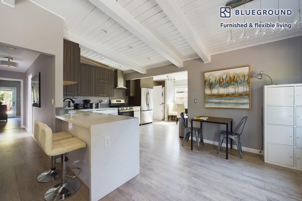 Show up and start living from day one in Menlo Park with this charming four bedroom Blueground house. You’ll love coming home to this thoughtfully furnished, beautifully designed, and fully equipped Belle Haven home. (ID #SFO1542) The advertised rate of $4,010/month is the lowest available price, based on a 1 month(s) and 3 day(s) stay with a move-in date of December 22, 2025. If you’re looking for a 1-year stay, the rate is $5,870/month. Rates vary depending on the duration of stay, season, and other parameters. For exact pricing and additional pricing components, please visit our website and enter your desired move-in and move-out dates. The rate is applicable when billed upfront; it can be higher if billed in multiple payments. Brokers are welcome to reach out. Were you looking for an unfurnished lease? Try Blueground instead and upgrade from unfurnished to furnished living: - Furnished at rates comparable to unfurnished - No setup or furniture costs - save thousands - Move-in ready - save time, just bring your suitcase Designed with you in mind Thoughtfully designed with bespoke finishes, modern furnishings, and a fully equipped kitchen, you’ll enjoy that “I’m home” feeling with this Blueground house. Whether you’re lounging in your comfortable living room streaming the latest and greatest entertainment on the smart TV or premium wireless speaker, or getting some well-earned rest on the superior quality mattress with luxury linens, you’ll fall in love with everything this Belle Haven house has to offer. This house also offers in-house laundry. Sleeping arrangements King Bed, 70.8in/180cm Queen Bed, 63in/160cm Queen Bed, 63in/160cm Queen Bed, 63in/160cm Amenities Building amenities unique to this four bedroom house include an on-site: - Dryer - Washing machine - Parking - Pets allowed Arrival and ongoing support The entire house is yours to enjoy! Throughout your stay, you’ll have access to our Client Experience team through the Blueground App. You can schedule additional cleanings, submit maintenance requests, and view our neighborhood recommendations with just a few taps. We’ll share all details upon confirmation of your stay. Other things to note This Blueground house has flexible lease options, allowing you to book it for one month, a year, or more. Pets are welcome, though weight limits and breed restrictions apply and may incur fees. Parking is offered based on availability and is subject to a fee. Please keep in mind that this is a walk up building. We take great pride in ensuring every photo displayed is shot in our own units with our actual furnishings. That said, we regularly refresh our decor and furniture arrangement, which may differ from what’s pictured. [SI]