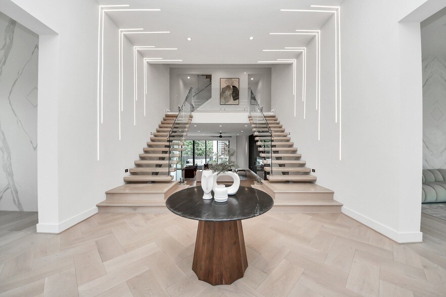 Experience elevated modern luxury at 5327 S Braeswood. This stunning 7-bed, 7.5-bath estate offers 7,000+ SF of living on an expansive 18,000+ SF lot in coveted Meyerland. Built on a solid slab foundation, the main home and full guest house combine contemporary design with functionality.Highlights include a grand dual staircase, elevator, soaring floor-to-ceiling windows, butler s kitchen, and chef s kitchen with quartz countertops and premium appliances.Enjoy outdoor living on every level covered patios, balconies, and rooftop terrace overlooking the custom elevated pool, spa, and professionally turfed backyard.Oversized 6-car garage plus a separate 2-car garage in the guest house, with dedicated EV outlets. Spacious first-floor primary suite with spa-like bath and custom walk-in closets.Zoned to Kolter Elementary, Meyerland Middle, and Bellaire High.Unmatched luxury, privacy, and design a true statement home. Schedule your private tour today!
