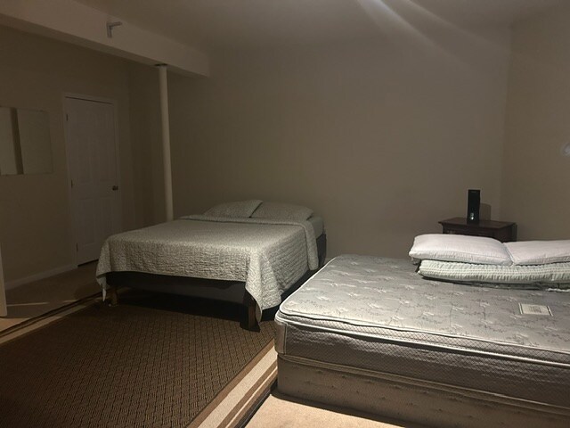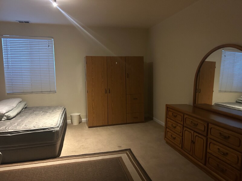 Property Id: 1243564 This is for a large private room shared bathroom in basement. It has 2 queen beds. Well ventilated and has 1 large windows. This is the one of the largest room in the house. Place is furnished and utilities included in rent.