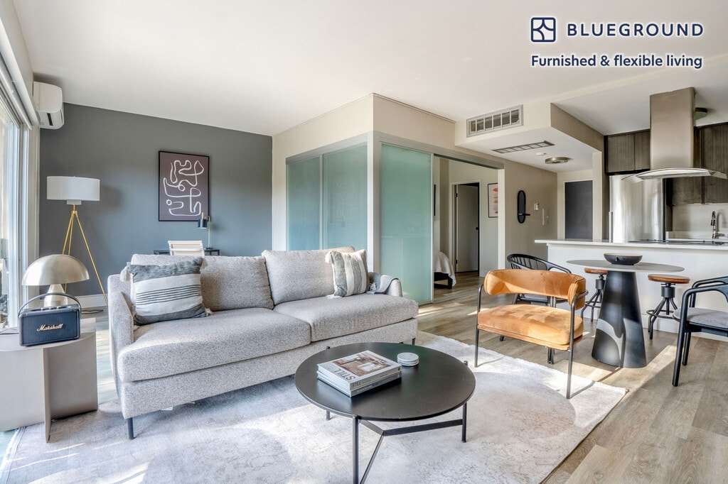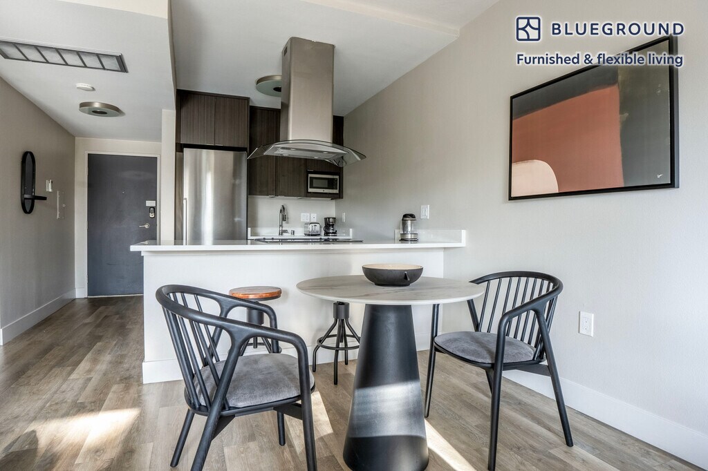 Show up and start living from day one in Palo Alto with this charming one bedroom Blueground apartment. You’ll love coming home to this thoughtfully furnished, beautifully designed, and fully equipped Downtown North home. (ID #SFO1496) The advertised rate of $3,980/month is the lowest available price, based on a 12 month(s) stay with a move-in date of March 1, 2026. Rates vary depending on the duration of stay, season, and other parameters. For exact pricing and additional pricing components, please visit our website and enter your desired move-in and move-out dates. The rate is applicable when billed upfront; it can be higher if billed in multiple payments. Brokers are welcome to reach out. Were you looking for an unfurnished lease? Try Blueground instead and upgrade from unfurnished to furnished living: - Furnished at rates comparable to unfurnished - No setup or furniture costs - save thousands - Move-in ready - save time, just bring your suitcase Designed with you in mind Thoughtfully designed with bespoke finishes, modern furnishings, and a fully equipped kitchen, you’ll enjoy that “I’m home” feeling with this Blueground apartment. Whether you’re lounging in your pretty living room streaming the latest and greatest entertainment on the smart TV or premium wireless speaker, or getting some well-earned rest on the superior quality mattress with luxury linens, you’ll fall in love with everything this Downtown North apartment has to offer. This apartment also offers in-floor laundry. Sleeping arrangements King Bed, 70.8in/180cm Amenities Building amenities unique to this one bedroom apartment include an on-site: - BBQ Area - Dryer of floor - Elevator - Swimming pool - Washing machine on floor - Parking Arrival and ongoing support The entire apartment is yours to enjoy! Throughout your stay, you’ll have access to our Client Experience team through the Blueground App. You can schedule additional cleanings, submit maintenance requests, and view our neighborhood recommendations with just a few taps. We’ll share all details upon confirmation of your stay. Other things to note Building amenities may have an extra cost. This Blueground apartment has flexible lease options, allowing you to book it for one month, a year, or more. Parking is offered based on availability and is subject to a fee. We take great pride in ensuring every photo displayed is shot in our own units with our actual furnishings. That said, we regularly refresh our decor and furniture arrangement, which may differ from what’s pictured. Also note - This apartment faces the street