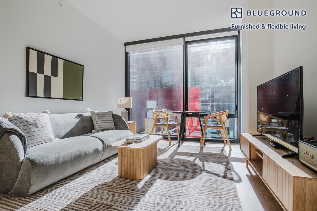 Feel at home wherever you choose to live with Blueground. You’ll love this stylish Streeterville furnished one bedroom apartment with its modern decor, fully equipped kitchen, and spacious living room with great views. Ideally located, you’re close to all the best that Chicago has to offer! (ID #CHI1150) The advertised rate of $2,640/month is the lowest available price, based on a 1 month(s) and 10 day(s) stay with a move-in date of March 10, 2026. If you’re looking for a 1-year stay, the rate is $3,030/month. Rates vary depending on the duration of stay, season, and other parameters. For exact pricing and additional pricing components, please visit our website and enter your desired move-in and move-out dates. The rate is applicable when billed upfront; it can be higher if billed in multiple payments. Brokers are welcome to reach out. Were you looking for an unfurnished lease? Try Blueground instead and upgrade from unfurnished to furnished living: - Furnished at rates comparable to unfurnished - No setup or furniture costs - save thousands - Move-in ready - save time, just bring your suitcase Designed with you in mind Thoughtfully designed with bespoke finishes, modern furnishings, and a fully equipped kitchen, you’ll enjoy that “I’m home” feeling with this Blueground apartment. Whether you’re lounging in your stylish living room streaming the latest and greatest entertainment on the smart TV or premium wireless speaker, or getting some well-earned rest on the superior quality mattress with luxury linens, you’ll fall in love with everything this Streeterville apartment has to offer. This apartment also offers in-apartment laundry. Sleeping arrangements Queen Bed, 63in/160cm Amenities Building amenities unique to this one bedroom apartment include an on-site: - Doorman - Dryer - Elevator - Swimming pool - Washing machine - Lounge - Pets allowed Arrival and ongoing support The entire apartment is yours to enjoy! Throughout your stay, you’ll have access to our Client Experience team through the Blueground App. You can schedule additional cleanings, submit maintenance requests, and view our neighborhood recommendations with just a few taps. We’ll share all details upon confirmation of your stay. Ideally Located This furnished rental is located in Streeterville, only a 5 minute walk from The Loop. One of the fastest-developing neighborhoods in Chicago, Streeterville extends out into Lake Michigan and attracts a blend of young professionals, students, and tourists. A plethora of amenities and activities exist for every lifestyle. From Navy Pier activities to luxury shopping on Michigan Avenue, it is a walkable community with easy access to entertainment. Other things to note Building amenities may have an extra cost. This Blueground apartment has flexible lease options, allowing you to book it for one month, a year, or more. Pets are welcome, though weight limits and breed restrictions apply and may incur fees. We take great pride in ensuring every photo displayed is shot in our own units with our actual furnishings. That said, we regularly refresh our decor and furniture arrangement, which may differ from what’s pictured. Also note - This apartment faces the street - This apartment is in close proximity to a fire/police station, so you can expect noise from time to time - This apartment's central location means it can be noisy at times [SI]