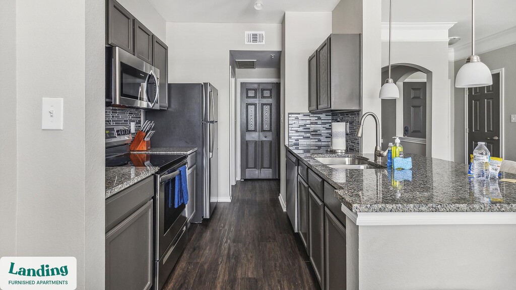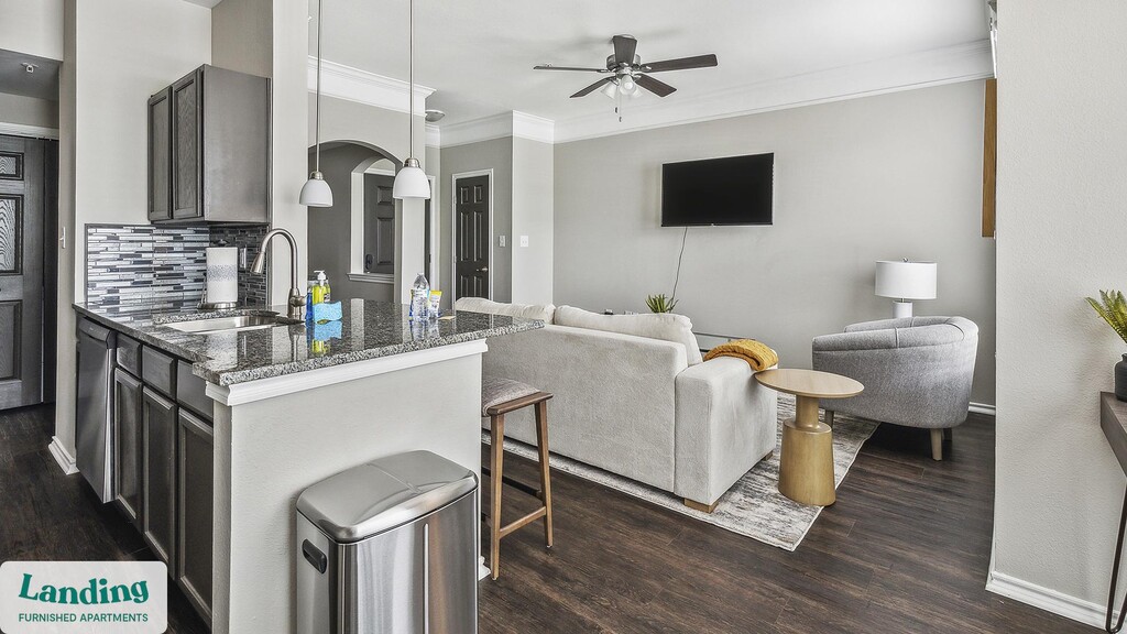 Landing offers flexible lease terms from weeks to months. Please always visit our website or contact us for the latest pricing & availability. Stay longer, save more: 6-Month Minimum base rent: starts at $1960/mo 12-Month Minimum base rent: starts at $1610/mo Landing offers flexible leases across a network of over 35,000 fully-furnished apartments throughout 375+ cities so you can rent on your terms, practically anywhere, and avoid the hassle of paying deposits or application fees. Visit to learn about all the benefits of a Landing membership, see our competitive up-to-date pricing, explore available apartments, take virtual tours, and make reservations online without jumping through traditional rental hoops. Landing's apartments at Ranch at Fossil Creek are designed for comfortable, easy living, with the ability to stay as long as you like. Experience living with Landing Every apartment is outfitted with all the modern essentials including: custom-designed furnishings, a fully-equipped kitchen with deluxe stainless steel appliances, a gourmet coffee maker, premium linens, Smart TVs, and incredibly fast, reliable internet for working from home. When you live with Landing, you'll enjoy a hassle-free experience with the added benefit of 24/7 access to our dedicated member experience team. Some of the nitty-gritty: a background check and proof of income are required; we're completely smoke-free; bundled utility packages and pricing vary based on length of stay; pet-friendly options available; listed price reflects a 12-month minimum stay.
