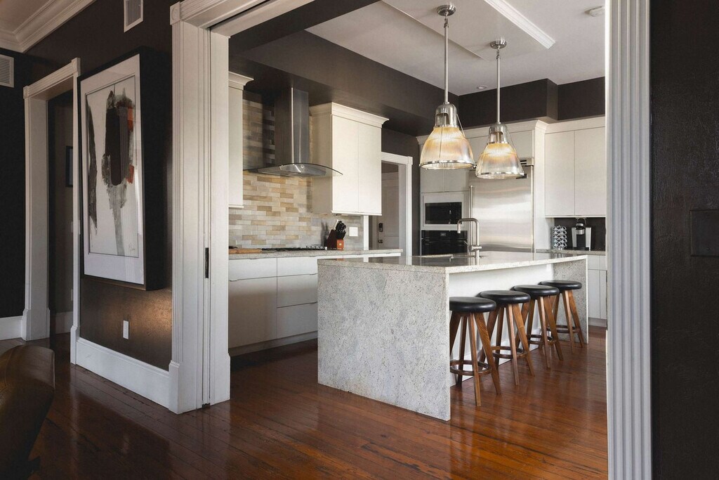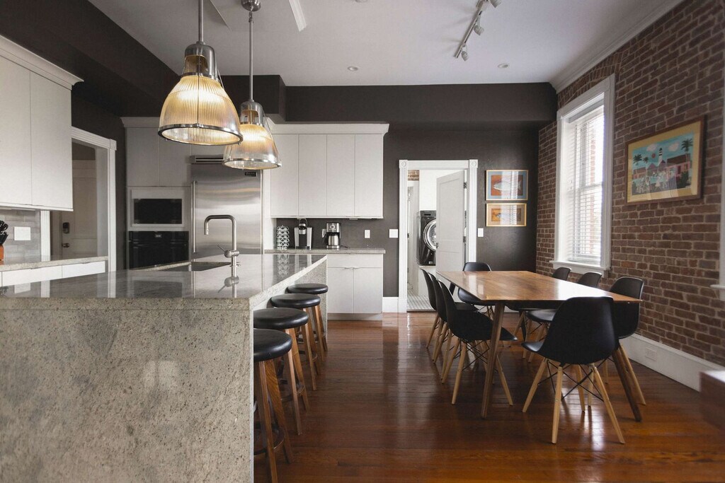 Experience the allure of this luxurious 2,000+ square foot penthouse, The Maloney, which occupies the entire second story of a historic red brick building at the corner of Fleming and Simonton. Originally constructed in 1908 as Key West's first pharmacy, this building now features two penthouse units and a first-floor boutique. The Maloney is available exclusively for monthly rentals, requiring a 30-day minimum stay. Start your day with idyllic Key West mornings at The Maloney, where the soft light of sunrise filters through 19th-century brick-framed windows, perfectly complementing a velvety cup of cafe con leche. The vibrant evenings offer a curated collection of local paintings and carvings, set against the glow of 100-year-old Dade County pine floors, creating an ideal ambiance for hosting a quiet dinner or serving cocktails to friends. Mid-stay cleans are available upon request. Situated on one of Key West's prime corners, The Maloney places you within a block of award-winning restaurants, coffee and sandwich shops, wine bars, craft cocktail bars, a local grocery store, and the world-famous Duval Street. The neighborhood's walkability is complemented by options to rent bikes from Fury or Island Bicycles, which offer pick-up and drop-off services. For a unique island experience, rent a scooter or golf cart from Minty’s. Traditional transportation options like Uber, Lyft, and taxis, including the reliable Pink Taxi, are also available for convenient travel. There is no parking included with your stay. Damages to the property or additional cleaning due to excessive mess are subject to charges. [SI]
