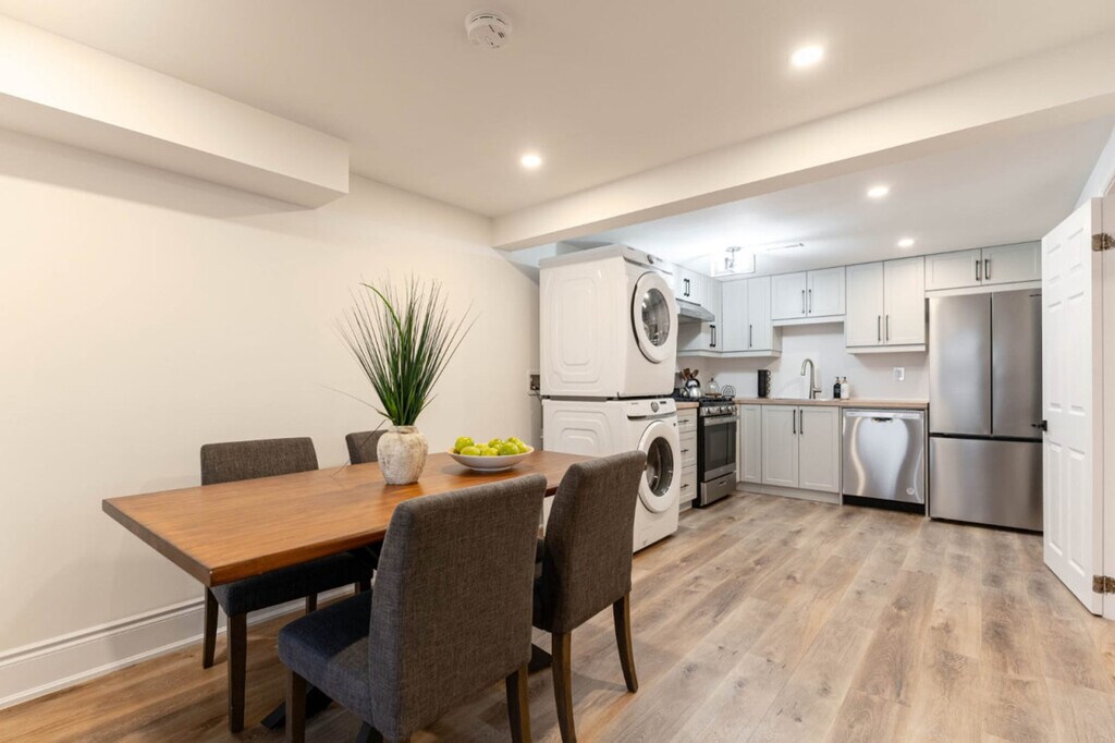The advertised rate of C$3,602/month is the lowest available price, based on a 30 day(s) stay with a move-in date of May 17, 2026. Rates vary depending on the duration of stay, season, and other parameters. For exact pricing and additional pricing components, please visit our website and enter your desired move-in and move-out dates. The rate is applicable when billed upfront; it can be higher if billed in multiple payments. Unwind and feel at home in this stylish 1-bedroom, 1-bath unit in Brampton. This modern and comfortable apartment features stylish wooden floors throughout. The fully equipped kitchen includes a microwave, stove, oven, refrigerator/freezer, dishwasher, toaster, sink with hot and cold water, trays, glasses, silverware, and pots and pans. The open-concept living area features a comfortable sofa and a large flat-screen TV. There is also a cozy dining table. Free parking is available for one vehicle. Pets are welcome with fees of $25 per day for 1-5 days, $200 for 6-28 days, and $300 for 29+ days. Adventure through Brampton and the surrounding area easily from this prime location, just 20 minutes from the airport and 10 minutes from downtown Brampton. Access is through the walkout located at the rear of the home. This is the lower unit of a 2-story home, and the backyard is for access only. Quiet hours start at 10 pm and end at 8 am. Smoking is not allowed inside the property, and evidence of indoor smoking will result in a $1000 fine. Pets are not allowed on fabric couches, chairs, and beds, and any evidence of damages will require additional cleaning and will be charged back to your reservation. No parties or undeclared social gatherings are allowed, and guests will be charged $500 for breaking this rule. A surcharge of $100 per undeclared guest per night will be applied for unapproved guests. Security cameras monitor the entrance of the home for safety and security, and tampering with these cameras will result in immediate cancellation of your reservation. There is a late check-out penalty of $100 per hour after 11:00 a.m. in case of a delayed check-out. [SI]