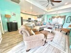 You've found your dream vacation home! Feel at home in this spacious 3-bedroom, 2-bath beach house that sleeps 8 people and boasts luxury finishes and appliances throughout. There are no stairs in the house, and the master bathroom features a walk-in shower, perfect for those with limited range of motion. The open concept living and dining areas ensure that you and your guests will have plenty of room to rest, relax, and play! The backyard features a private pool, gas grill, and covered seating. A fully fenced yard provides great privacy. Bath towels are provided; please bring your own beach towels. A street legal golf cart is included for guest use. Up to two dogs of non-aggressive breeds and under 60 lbs each are allowed upon approval and payment of a $115 pet fee. Enjoy the peace and quiet of the neighborhood or spend the day shopping, dining, and enjoying the white sand beaches easily accessed by bike or golf cart. The home is a short walk from beach access and a public boat ramp with lagoon and gulf access. Local spots include St. Andrew's State Park, Wonderworks, Ripley's Believe it or Not Museum, Just Jump Trampoline Park, Dat Cajun Place, Liza's Kitchen, Finn's Island Style Grub & Barista Bar, Patches Pub, Diego's Burrito Factory, Paparazzi Pizza, Panama City Beach Winery, Gypsea Crepes, Sue's Thai Cafe, and Andy's Flour Power Cafe and Bakery. There is a strict 8-person capacity limit, and anyone exceeding this limit will be subject to immediate discontinuation of their reservation without refund. Please treat the property with care and respect. Please keep noise to a minimum after 10:00 pm. The booking guest must be at least 21 years of age and present throughout the entire stay! Please ensure the grill is clean before leaving. Security cameras are located in the front and back yards of the residence and inside the garage. There are no cameras in the living areas of the residence. There is also an alert on the back doors leading to the pool area as required. Guests must park vehicles in driveway spaces only. Communicate any property damage or maintenance needs to the property managers immediately. For fire or medical emergencies, first call 911 before notifying management. [SI]