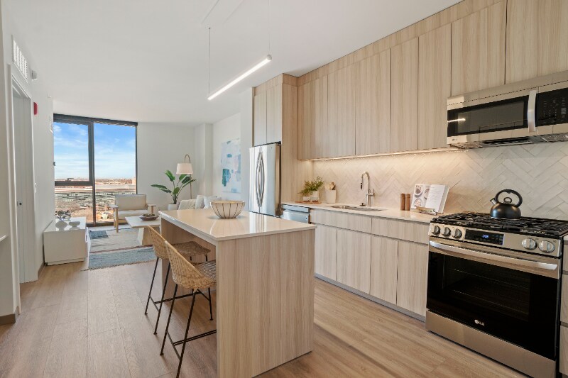 Property Id: 2219694 This 22-floor building has expansive space that is thoughtfully designed to provide you with a living situation that's similar to what you would get from a luxury home. Every unit has a high-end appearance with wood plank flooring throughout, quartz countertops, and LG Stainless steel appliances. One bedroom units all come with kitchen islands or peninsulas. Structural features like floor-to-ceiling windows and high ceilings make an already spacious unit feel even bigger, and the in-unit washers & dryers. When it comes to amenities, these guys know what folks want. Imagine having access to luxury amenities like an indoor and outdoor rooftop lounge, fitness center, and coworking space with individual workstations. They even have a 24-hour concierge, ensuring a balanced lifestyle that's both comfortable and convenient for you. Cats and dogs are accepted throughout. On-site pet spa and large private dog park.