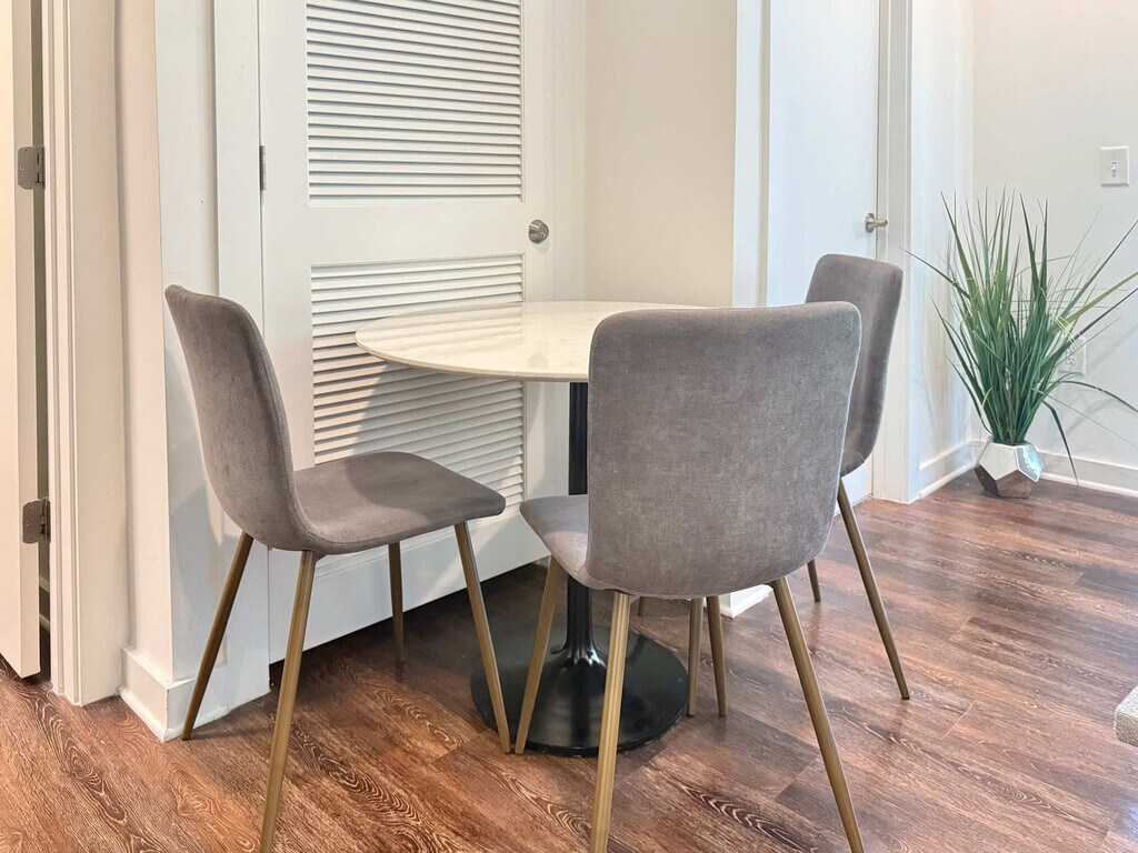 Come stay at this new condo in the Old Fourth Ward neighborhood of Atlanta. This cozy 1-bedroom apartment features a queen bed, a full bathroom with a shower/tub combo, and a fully equipped kitchen with modern appliances. Enjoy the convenience of an in-unit washer and dryer, a plush sofa, and a large flat-screen smart TV in the living room. Its convenient location near major ATL attractions makes it an ideal choice for your stay. This condo is a cozy retreat perfect for a couple or solo travelers, offering a convenient location to Atlanta attractions, great restaurants, and shopping. With a fully equipped kitchen and a washer and dryer in the unit, it is an excellent choice for long-term stays. The bathroom is stocked with a hairdryer and toiletries for your convenience. The kitchen has everything you’ll need to prepare meals, including modern appliances, ample counter space, and all the cooking basics. Relax in the living room with a plush sofa and large flat-screen smart TV. We provide a coffee machine with coffee, cream, and sugar for your enjoyment. The Old Fourth Ward is a trendy hub attracting foodies and shoppers. Hip eateries and indie fashion stores fill Ponce City Market, while Irwin Street Market offers artisan foods. The Atlanta Beltline's Eastside Trail is perfect for walking and cycling. Nearby, Historic Fourth Ward Park has a skate-park. The condo is 1 mile to Midtown and Emory University Hospital Midtown, a 7-minute drive to Georgia State Capitol and Downtown Atlanta, and close to MARTA Rail, Ponce City Market, Fox Theatre, and more. No smoking, no pets, and no parties or events are allowed. Any complaints for loud behavior during quiet hours from 10PM to 8AM will result in being asked to vacate the flat. Check-in time is after 4PM and check-out is by 10AM. Quiet hours are between 9PM and 9AM. A remote work-friendly environment is available with high-speed Wi-Fi, making it easy to work from home during your stay.