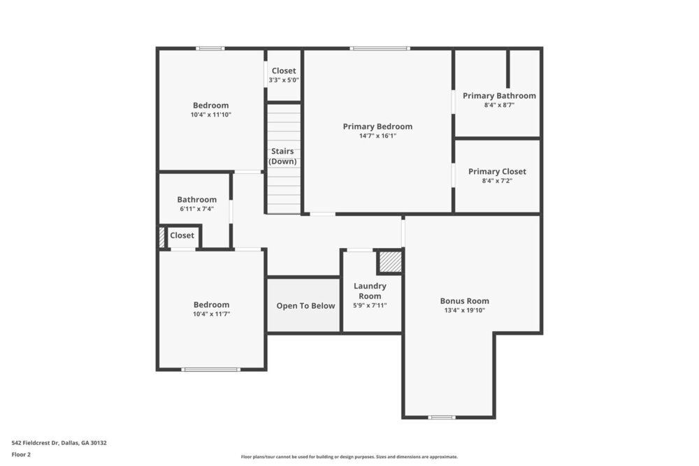 542 Fieldcrest Dr is located in the 30132 Zip code of Dallas, GA.