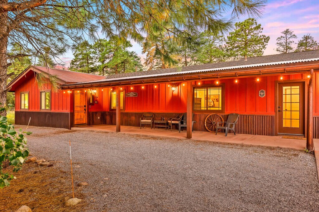 The advertised rate of $7,690/month is the lowest available price, based on a 1 month(s) and 2 day(s) stay with a move-in date of February 23, 2026. Rates vary depending on the duration of stay, season, and other parameters. For exact pricing and additional pricing components, please visit our website and enter your desired move-in and move-out dates. The rate is applicable when billed upfront; it can be higher if billed in multiple payments. Experience the ultimate adventure base just minutes from the Grand Canyon, Snowbowl skiing, Sedona hikes, and Flagstaff/NAU. Perfect for large groups, this modern retreat is nestled on 2.5 acres of Ponderosa Pines, offering stunning views of Doney Park East ridges with direct hiking and biking access. The single-level property features a spacious open concept living area, a loaded game room, hot tub, gourmet kitchen, and fire pit, ensuring you feel at home and have everything you need for an unforgettable stay. The main living area provides a spacious open concept, giving it a "Grand Room" appearance to make you feel comfortable and at home. Enjoy ample seating around the wood fireplace and a large central entertainment set-up with a 75" TV loaded with streaming apps. The kitchen is fully equipped with Thermador appliances, a large center island, and all the essentials for your culinary needs, including a Keurig coffee maker, double ovens, and a gas cooktop. The dining area features a large wooden farmhouse table overlooking backyard views, with additional seating at the kitchen island and outside. Additional amenities include Wi-Fi throughout the house, guidebooks for local attractions, and board games for kids of all ages. There is attached garage access for indoor vehicle parking and RV hookups available for an additional fee. The backyard features a fire pit, barbeque, hot tub, and patio picnic area with plenty of seating to enjoy Flagstaff's stunning views. Up to two dogs are allowed upon approval with an additional fee of $15 per night and a total deposit of $250. Welcome to your adventure retreat, nestled in a peaceful Piñon Pine community on nearly 3 acres. This home is the perfect jump-off point for recreation, relaxation, and exploration. Nearby attractions include San Francisco Peaks, Arizona Snowbowl, Meteor Crater Natural Landmark, and Lowell Observatory. Downtown Flagstaff is just 7 miles away, offering a variety of restaurants and entertainment options. The property is also conveniently located near several golf courses and Flagstaff Pulliam Airport, making it a prime location for adventure and relaxation. The home is equipped with air conditioning and a tankless water heater, ensuring you won't run out of hot water. The fireplace is not available for guest use due to safety and cleaning concerns. The property is in a small residential community, so guests are asked to keep noise to a reasonable level. A keyless entry system is used for the front door, and the key code will be provided on the morning of your stay. Up to 12 guests can be accommodated, with an additional fee of $20 per night per person over 8 guests for additional cleaning and associated costs. Up to two dogs are allowed with an additional fee and deposit, and pets must be kenneled or left in the yard when unattended. The home includes a desk in the master bedroom to accommodate a private workspace for those workcations. The property is equipped with a mesh network for excellent internet connectivity, ensuring a remote work-friendly environment. Registration Number: STR-23-0081 [SI]