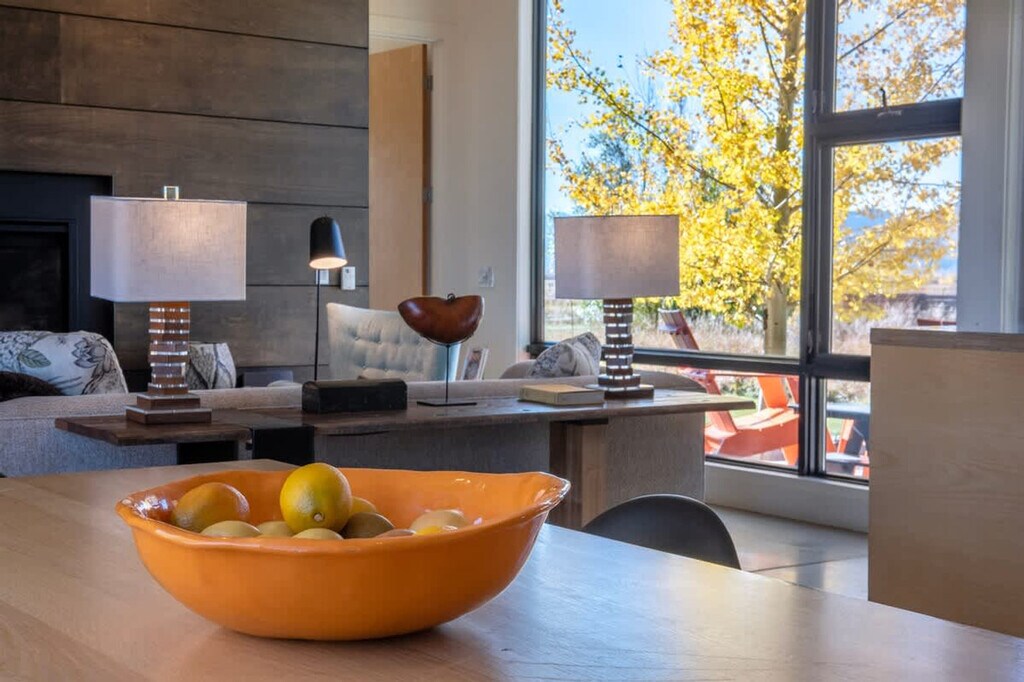 Escape to this exquisite 3-bedroom, 2.5-bathroom home, nestled in the serene northern reaches of Victor. This idyllic retreat boasts breathtaking 360-degree mountain panoramas, all within the embrace of 20 sprawling acres teeming with wildlife. At every turn, you'll feel at home, mesmerized by the majesty of the surrounding mountains, thanks to thoughtful design that integrates the great outdoors into your living space through expansive floor-to-ceiling windows. Welcome to this spacious vacation home with an inviting open floor plan! On the ground level, you'll find the well-equipped kitchen, a charming dining area, and a cozy living room. The master bedroom, also conveniently located on the ground floor, features a comfortable king-size bed and a private master bathroom with a ¾ bath. Upstairs, there are two more bedrooms to accommodate your group. One bedroom boasts a king-size bed, while the other offers a queen-size bed. These two bedrooms share a lovely full bathroom. Additionally, there's a delightful sitting area just off the bedrooms, perfect for unwinding after a day of adventure. To make your stay even cozier, there is a propane burning stove in the heart of the living area, creating a warm and inviting ambiance on chilly winter nights. This location is a dream for outdoor enthusiasts, with easy access to world-class fishing, hiking, kayaking, mountain biking, and skiing. Distances to National Parks include Yellowstone - West Entrance at 2 hr 8 min (110.3 mi), Yellowstone - South Entrance at 2 hr 18 min (96.7 mi), and Grand Teton at 51 min (33.8 mi). You can also access hiking and activities in the Tetons here in Teton Valley, affectionately called the quiet side of the Tetons. Distances to Ski Resorts include Grand Targhee Ski and Summer Resort at 33 min (19.3 mi) and Jackson Hole Mountain Resort at 43 min (30.1 mi). Distances to Regional Airports include Idaho Falls, ID (IDA) at 1 hr 19 min (70.8 mi), Jackson, WY (JAC) at 57 min (38.2 mi), and Bozeman, MT (BZN) at 3 hr 32 min (191.6 mi). Distances to area towns include Driggs, ID at 12 min (7.2 mi), Victor, ID at 8 min (4.4 mi), Jackson, WY at 44 min (28.9 mi), and Teton Village, WY at 44 min (30.2 mi). Treat this home as if it were your own and be respectful of the rules, neighbors, and local community at the base of the Tetons. The number of people at the property should not exceed the maximum sleeping capacity. Quiet hours are from 9 pm to 8 am. No events, parties, large gatherings, weddings, smoking, or vaping are allowed in the home or on the decks. An additional charge will be applied if any smoking-related waste is found on the property. Turn all exterior lights off at night to enjoy the dark skies. Drive slowly in the neighborhood in respect of children, pets, and wildlife. A maximum of three licensed vehicles is allowed in the driveway and garages. No riding snow machines, dirt bikes, or ATVs in the subdivision or at the rental property. Do not burn candles or incense in the home and no fireworks on the premises. Keep all main entry doors locked when not occupied. Fines will apply for violations including but not limited to: leaving garbage in house or litter on grounds, smoking in house or garage, failure to follow house rules and respect posted signs, failure to follow check-out procedure, or violations of local laws. A minimum $500 fine for smoking, vaping, or marijuana use in the house, violation of house rules, posted signs, laws, or failure to vacate at check-out time. Compliance with these rules is essential for every member in your group. The right to evict any guests or visitors from the property who refuse to follow these house rules with no refund given is reserved.