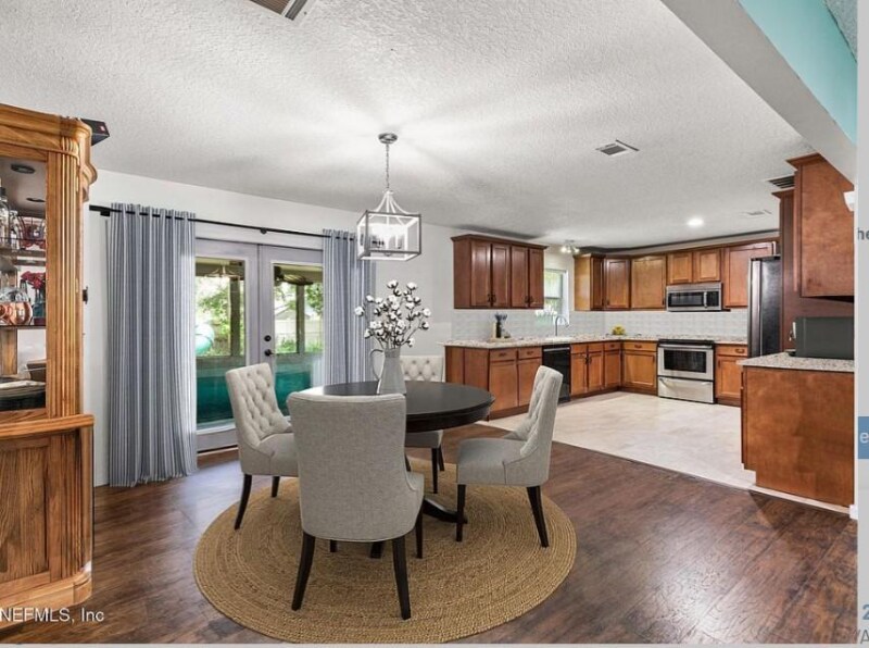 Property Id: 2181220 Nestled among mature trees, this charming 1960s home has been fully updated with a new roof, plumbing, electrical, kitchen, bathrooms, and appliances (2014). The open floor plan features vinyl flooring, voice-controlled recessed LED lighting, and a modern kitchen with tall shaker cabinets, granite countertops, and stainless steel appliances. The owner's suite offers a double vanity and walk-in shower, while the screened porch with fan and Edison lights opens to a fenced backyard—complete with a Costco playset and plenty of space for entertaining. The garage includes a workbench and storage closet. Conveniently located near Blue Cypress Park and Arlington Lions Club Park