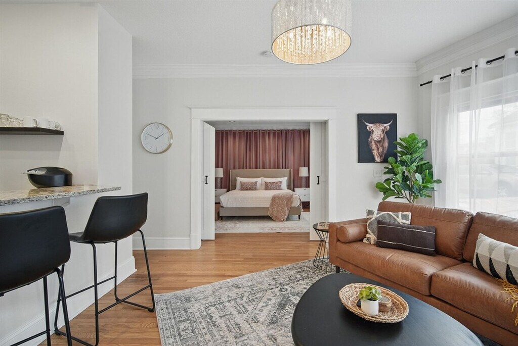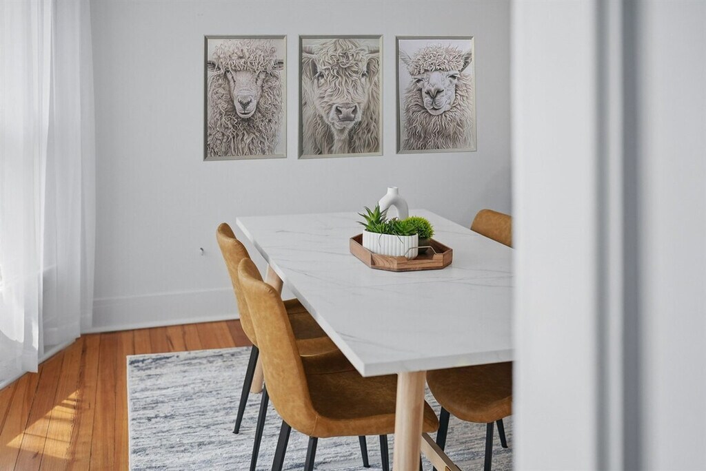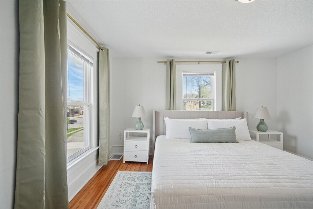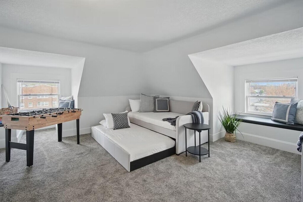 Feel at home in this spacious, sun-filled modern farmhouse with two full living spaces, perfect for families, friends, or groups who want to be together but still enjoy some privacy. The first floor and upper levels are separate units under one roof. This home features two kitchens, two living areas, including a top-floor game loft with a 65" smart TV and a 10-in-1 game table. It also includes high-speed Wi-Fi throughout, smart TVs in every living space and bedroom, in-unit laundry, fully stocked kitchens with coffee, cookware, towels, toiletries, and hair dryers. A pack ‘n play, kids’ dinnerware, and a high chair are provided. Nestled just off Ingersoll Avenue, one of Des Moines’ most walkable and charming neighborhoods, this home is steps from Ingersoll’s dining, cafes, local boutiques, and a short drive to downtown DSM, the sculpture park, and Gray’s Lake. We recommend reviewing all details, including house rules, amenities, and location information, prior to booking to ensure it’s the right fit for your stay.