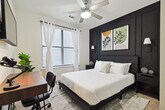 Feel at home in this newly updated 2-bedroom, 2-bath apartment in Frisco, TX. This residence offers a vibrant living experience. This newly renovated apartment features high-end furnishings and upscale decor, including granite countertops, a kitchen island, and stainless steel appliances. The fully equipped kitchen includes complimentary coffee and tea. Enjoy the 50" smart TV with live cable and Netflix, high-speed Wi-Fi, in-unit laundry, complete temperature control, a coffee maker, an electric kettle, and a microwave. The apartment also features luxurious memory foam queen beds with premium bedding. Enjoy access to a backyard with a BBQ grill and outdoor dining area, a patio or balcony with sun loungers, an elevator, an EV charger, free on-site and street parking, and gym access. Situated near Legacy West, this Frisco apartment offers easy access to shopping, dining, and entertainment. Indulge in retail therapy at Stonebriar Centre, Legacy West, and The Shops at Legacy. Enjoy activities like golfing at Stonebriar Country Club, attending games at Dr. Pepper Ballpark, or cheering on your favorite soccer team at Toyota Stadium. It's also only 5 minutes from Legacy West and major employers such as Toyota, JPMorgan Chase, Ericsson, and PepsiCo. This property enforces a strict no-party policy. Ring cameras monitor the entrance, and noise detectors are installed inside. Any party activity will prompt police intervention and immediate eviction without refunds. Unauthorized guests at the unit or pool will incur a $100 fine per person. Pets must be disclosed and approved in advance. No pets over 50lbs are allowed. There is an extra one-time fee per pet per stay: 1-2 nights: $100/pet, 3-6 nights: $150/pet, 7-29 nights: $250/pet, 30+ nights: $300/month/pet. Smoking, drug, and vape use is not allowed inside the unit, on the balcony, or in the hallways of the building. There is a $1000 fine if discovered or reported. Strictly observe quiet hours: 10pm - 8am. There is a fee of $1000 if a party is discovered or if a neighbor complains of excessive noise. [SI]