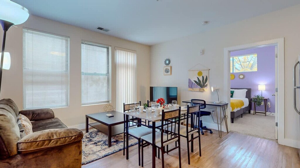The advertised rate of $5,713/month is the lowest available price, based on a 1 month(s) stay with a move-in date of April 8, 2026. Rates vary depending on the duration of stay, season, and other parameters. For exact pricing and additional pricing components, please visit our website and enter your desired move-in and move-out dates. The rate is applicable when billed upfront; it can be higher if billed in multiple payments. Feel at home in this apartment located in the heart of the Bedford neighborhood, near great restaurants. This space includes a bedroom and a bathroom with a spacious glass shower. This space includes a desk and office chair. There is high-speed Wi-Fi. You will have access to an amazing fitness center and the seasonal rooftop. Free parking is available, so you can bring your own car for easy travel. Uber/Lyft are readily available. Pets are allowed with an additional fee of $20 for the first night, and then $5 per night per pet with a max of $75 a month per pet. If your pet causes any damage you are directly responsible. Also make sure to take pets out to designated bathroom area where doggy bags are provided. You are responsible for all messes made by your furry friend. Also, pets must always be on a leash outside the apartment. Nestled in the heart of Stamford, this neighborhood offers the perfect blend of urban convenience and suburban tranquility. Just a short drive from downtown Stamford, you'll find an array of dining, shopping, and entertainment options. Local attractions include the Stamford Museum & Nature Center (5 minutes by car), Mill River Park (7 minutes by car), Stamford Downtown and the Palace Theatre (7 minutes by car), Stamford Town Center (10 minutes by car), Stamford Train Station (10 minutes by car), Harbor Point (12 minutes by car), Chelsea Piers Connecticut (12 minutes by car), and Cummings Park Beach and Fort Stamford Park (15 minutes by car). Dining and shopping options include Bedford Street, Stamford Town Center, and Harbor Point. Public transportation is available. Quiet hours are between 10 pm and 8 am. The building has a strict occupancy limit, and any group attempting to violate the community policies on occupancy limit or quiet hours will be removed immediately. This is a non-smoking property, and any type of smoke is prohibited in the apartment and outside the building. This violation will incur a $200 per day fee. Any lost keys, getting locked out, parking credentials or access card will be $150 per lost item to replace. If you throw a party, trash the space, damage the unit, disrespect the property, or have a gathering with extra guests that are not reported in your initial booking, you will be fined $200. Tampering with security devices or storage is a house rules violation that comes with an $500 fine and your instant non-refundable termination of your reservation. If we receive any lease violations (smoking, noise complaints, trash, etc.), you will be charged with a $500 fine. If not vacating on time leads to other losses you will be billed for those as well. Not declaring guests will incur a $60 per additional fee. Any theft or damage cause by you that leads to loss of revenue or incurred cost of satisfying a future reservation will be paid by you. Includes a desk and office chair. [SI]