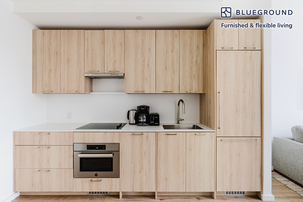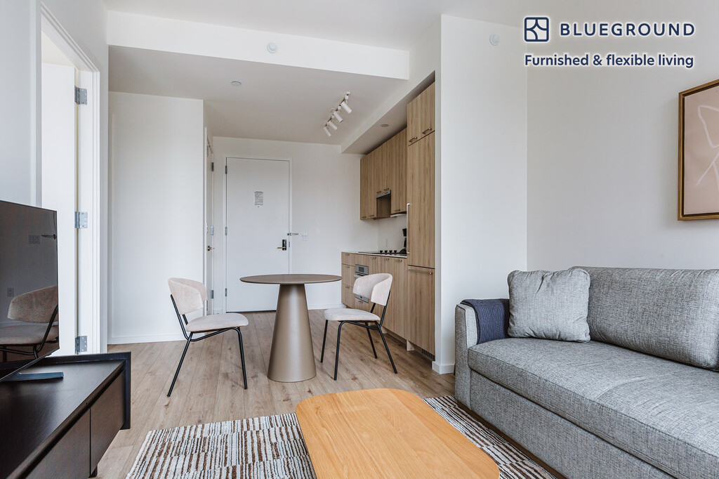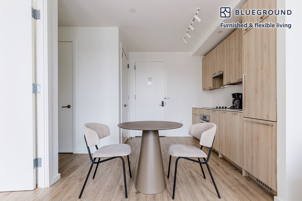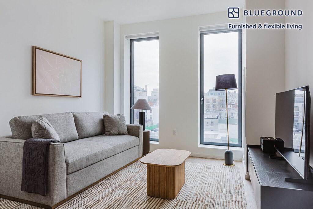 Discover the best of New York, with this one bedroom apartment in Clinton Hill with views over the city. It’ll be easy to simply show up and start living in this stylishly furnished apartment with its fully equipped kitchen, beautiful living room, and our dedicated, on-the-ground support. (ID #NYC1654) The advertised rate of $2,610/month is the lowest available price, based on a 1 month(s) and 17 day(s) stay with a move-in date of December 1, 2025. If you’re looking for a 1-year stay, the rate is $3,700/month. Rates vary depending on the duration of stay, season, and other parameters. For exact pricing and additional pricing components, please visit our website and enter your desired move-in and move-out dates. The rate is applicable when billed upfront; it can be higher if billed in multiple payments. Brokers are welcome to reach out. Were you looking for an unfurnished lease? Try Blueground instead and upgrade from unfurnished to furnished living: - Furnished at rates comparable to unfurnished - No setup or furniture costs - save thousands - Move-in ready - save time, just bring your suitcase Designed with you in mind As with any Blueground apartment, you’ll find a thoughtfully designed space complete with beautiful furniture and a fully equipped kitchen in this one bedroom property. And, thanks to our superior quality mattresses, luxury linens, and towels, you can relax knowing you’ll always feel comfortably at home. When you’re ready for some fun, you can take in the New York vibes or bring the entertainment to you with the premium wireless speaker or smart TV. This apartment also offers in-apartment laundry. Sleeping arrangements Queen Bed, 63in/160cm Amenities Building amenities unique to this one bedroom apartment include an on-site: - Doorman - Dryer - Elevator - Swimming pool - Washing machine - Lounge - Pets allowed Arrival and ongoing support The entire apartment is yours to enjoy! Throughout your stay, you’ll have access to our Client Experience team through the Blueground App. You can schedule additional cleanings, submit maintenance requests, and view our neighborhood recommendations with just a few taps. We’ll share all details upon confirmation of your stay. Ideally Located This furnished apartment is located in Clinton Hill, a historic downtown Brooklyn neighborhood. The area is home to trendy shops, inventive restaurants, and plenty of beautiful brownstone buildings. The Pratt Institute, a prestigious art college, is located in Clinton Hill. Other nearby attractions include lovely Fort Greene Park and Barclays Center, a massive sports arena and concert venue. Clinton Hill is served by the A, C, and G lines of the New York City subway system. Other things to note Building amenities may have an extra cost. This Blueground apartment has flexible lease options, allowing you to book it for one month, a year, or more. Pets are welcome, though weight limits and breed restrictions apply and may incur fees. Brokes CYOF. We take great pride in ensuring every photo displayed is shot in our own units with our actual furnishings. That said, we regularly refresh our decor and furniture arrangement, which may differ from what’s pictured.