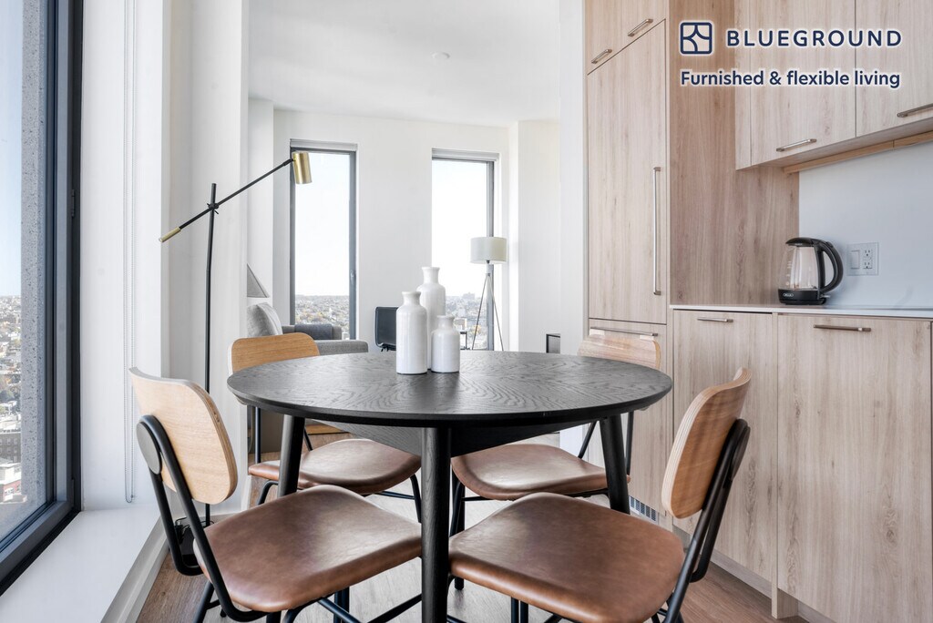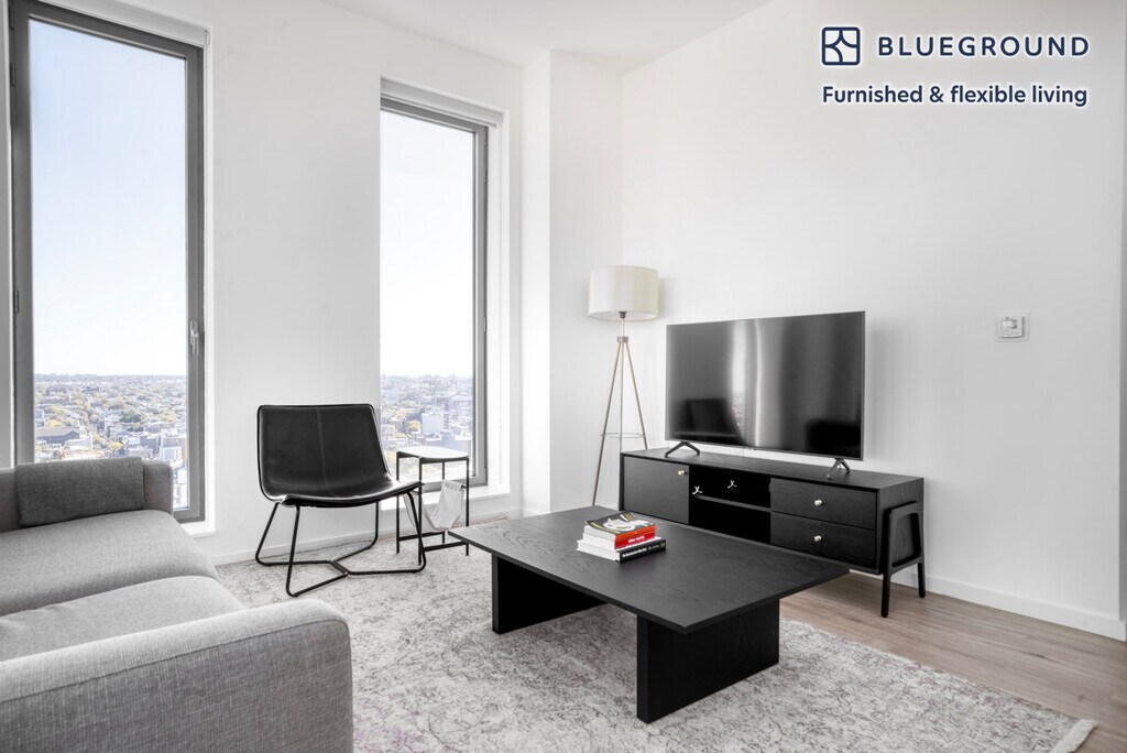 Feel at home wherever you choose to live with Blueground. You’ll love this cheery Clinton Hill furnished two bedroom apartment with its modern decor, fully equipped kitchen, and exquisite living room with great high floor views. Ideally located, you’re close to all the best that New York has to offer! (ID #NYC970) The advertised rate of $7,320/month is the lowest available price, based on a 12 month(s) stay with a move-in date of July 1, 2026. Rates vary depending on the duration of stay, season, and other parameters. For exact pricing and additional pricing components, please visit our website and enter your desired move-in and move-out dates. The rate is applicable when billed upfront; it can be higher if billed in multiple payments. Brokers are welcome to reach out. Were you looking for an unfurnished lease? Try Blueground instead and upgrade from unfurnished to furnished living: - Furnished at rates comparable to unfurnished - No setup or furniture costs - save thousands - Move-in ready - save time, just bring your suitcase Designed with you in mind As with any Blueground apartment, you’ll find a thoughtfully designed space complete with beautiful furniture and a fully equipped kitchen in this two bedroom property. And, thanks to our superior quality mattresses, fully stocked linens, and towels, you can relax knowing you’ll always feel comfortably at home. When you’re ready for some fun, you can take in the New York vibes or bring the entertainment to you with the premium wireless speaker or smart TV. This apartment also offers in-apartment laundry. Sleeping arrangements Queen Bed, 63in/160cm Queen Bed, 63in/160cm Amenities Building amenities unique to this two bedroom apartment include an on-site: - Doorman - Dryer - Elevator - Swimming pool - Washing machine - Lounge - Pets allowed Arrival and ongoing support The entire apartment is yours to enjoy! Throughout your stay, you’ll have access to our Client Experience team through the Blueground App. You can schedule additional cleanings, submit maintenance requests, and view our neighborhood recommendations with just a few taps. We’ll share all details upon confirmation of your stay. Ideally Located This furnished apartment is located in Clinton Hill, a historic downtown Brooklyn neighborhood. The area is home to trendy shops, inventive restaurants, and plenty of beautiful brownstone buildings. The Pratt Institute, a prestigious art college, is located in Clinton Hill. Other nearby attractions include lovely Fort Greene Park and Barclays Center, a massive sports arena and concert venue. Clinton Hill is served by the A, C, and G lines of the New York City subway system. Other things to note Building amenities may have an extra cost. This Blueground apartment has flexible lease options, allowing you to book it for one month, a year, or more. Pets are welcome, though weight limits and breed restrictions apply and may incur fees. Brokes CYOF. We take great pride in ensuring every photo displayed is shot in our own units with our actual furnishings. That said, we regularly refresh our decor and furniture arrangement, which may differ from what’s pictured. [SI]