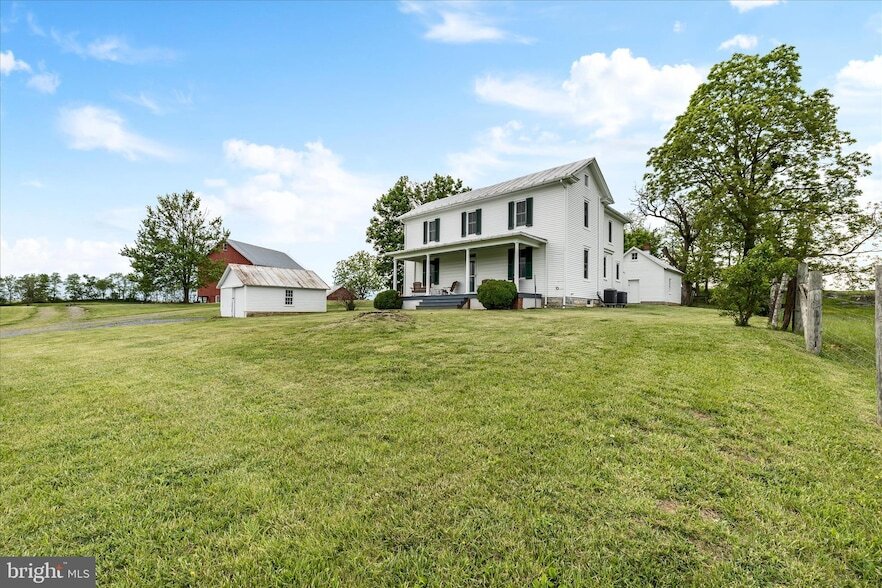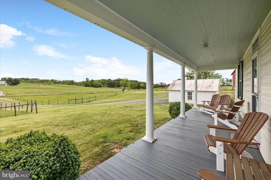 Welcome to 5452 Middle Road, a beautifully renovated farmhouse offering the perfect blend of historic charm and modern comfort, all set on a picturesque 10-acre property. Enjoy peaceful views of rolling pastures, barns, cows, and mountains, all without the upkeep of maintaining the land yourself. This thoughtfully updated home is filled with character, featuring beautiful trim work, hardwood floors throughout, and built-ins that add warmth and personality. The main level includes a spacious family room, a bright office (or potential bedroom), a full bath with walk-in shower, and a large mudroom/laundry area. The eat-in kitchen is a true highlight, offering plenty of cabinet space, a walk-in pantry, and access to the brick patio that s perfect for outdoor dining or relaxing with a view. Upstairs, you ll find three generous bedrooms and a shared full bath. One bedroom even features an enclosed porch and a cozy office area, ideal for remote work or quiet reading time. Fully furnished with a tasteful blend of modern and antique pieces, the home can also be rearranged to suit your needs. Additional outdoor spaces include a covered front porch and a private brick patio surrounded by beautiful landscaping. All of this in an idyllic setting just minutes from town, offering the serenity of country living with the convenience of Winchester close by.