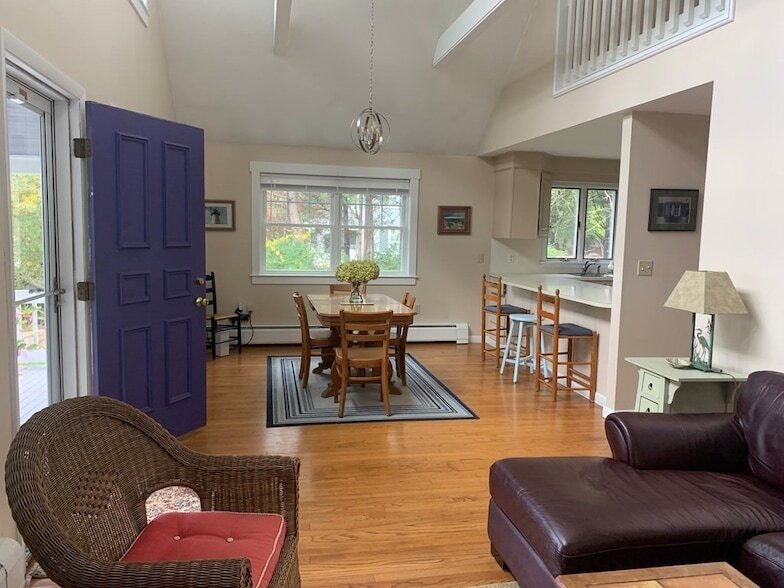 Winter Rental Available Oct 15 to June 15. Tastefully furnished and beautifully maintained 2-bedroom year-round home with open floor plan, cathedral ceilings, and custom windows. Kitchen flows into dining area with breakfast counter. Loft space on upper level is ideal for working from home. Relax on the spacious front porch or head to private Crescent Beach. Enjoy nearby conservation land, walking trails, marshes, biking, shellfishing, and beach combing. Convenient to all that Mattapoisett has to offer. Washer and dryer on site. Brand new energy-efficient heating system. No pets. No smoking. $49 screening fee for background/credit/criminal check after preliminary approval of application by landlord.