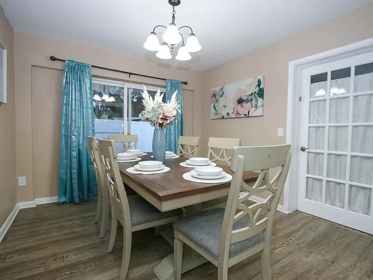 Property Id: 1557734 Fully Furnished, Move-in ready! This spacious single-story home features new furniture designed for comfort. Perfect for up to 10 guests, it has 5 bedrooms offering plenty of space and privacy. Enjoy the large sectional couch and Smart TV. The dining room seats 6, with 3 additional seats at the kitchen island. The kitchen includes cooking essentials, a Keurig Coffee Maker, and a Ninja blender. The master bedroom features a king-size bed, en-suite bathroom with walk-in shower, double vanity, jacuzzi bathtub, Smart TV, and a desk area. An attached guest bedroom with a full-size bed can be closed off for privacy. Bedroom 2: Two twin beds Bedroom 3: Queen-size bed Bedroom 4: Queen-size bed, living area, futon bed, private entrance Guest bathrooms have walk-in showers, with one in the air-conditioned game room/garage, which includes mini golf, video games, foosball, and basketball. The backyard offers covered seating and patio lighting. Parking for up to 4 cars. Flexible terms.