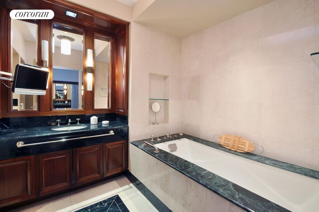 AVAILABLE DECEMBER 1 - Welcome to 55 Wall Street - Historic Landmark Residence. Apartment #838 is the right sized 1 Bedroom home that checks all the boxes. Overlooking Wall Street, every inch of the home is sunny, spacious, and in perfect proportion. Enter to a proper gallery foyer, ideal for displaying art, leading to the open living and dining room.The feel is open and airy with a SubZero/Bosch/Miele kitchen, tastefully appointed with granite counters and custom zebrawood cabinets. The King Size bedroom suite, features an extra large walk in closet, and ample space for seating or a proper work station. Completed with rich mahogany hardwood floors throughout, dual blackout and solar window treatments, Vitsoe style shelving in both bedroom and living room, in unit washer/dryer, and the renown Regent Marble bath, which is second to none.About the building: 55 Wall Street is officially recognized as an historic landmark, and one of the premier condominiums in the Financial District. Boasting an attentive yet discreet 24 hour concierge and porter service, fully equipped fitness center and gorgeous landscaped roofdeck. Superb central Wall Street location has the newly opened Whole Foods just down the block. Enjoy some of the city's best dining and entertainment, with the Seaport, Stone Street, Battery Park promenade only steps away, and easy transportation anywhere in NYC with nearly every subway line and ferries stopping close by.Fees required to rent this unit:$700 Condo Application Fee$120 Credit Check Fee per applicant$200 Move in Fee