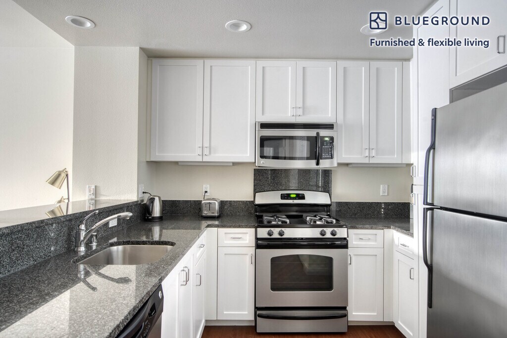 Discover the best of Santa Clara, with this one bedroom apartment in Rivermark of Santa Clara. It’ll be easy to simply show up and start living in this furnished apartment with its fully equipped kitchen, living room, and our dedicated, on-the-ground support. (ID #SFO871) The advertised rate of $4,580/month is the lowest available price, based on a 11 month(s) and 29 day(s) stay with a move-in date of November 9, 2025. Rates vary depending on the duration of stay, season, and other parameters. For exact pricing and additional pricing components, please visit our website and enter your desired move-in and move-out dates. The rate is applicable when billed upfront; it can be higher if billed in multiple payments. Brokers are welcome to reach out. Were you looking for an unfurnished lease? Try Blueground instead and upgrade from unfurnished to furnished living: - Furnished at rates comparable to unfurnished - No setup or furniture costs - save thousands - Move-in ready - save time, just bring your suitcase Designed with you in mind As with any Blueground apartment, you’ll find a thoughtfully designed space complete with beautiful furniture and a fully equipped kitchen in this one bedroom property. And, thanks to our superior quality mattresses, luxury linens, and towels, you can relax knowing you’ll always feel comfortably at home. When you’re ready for some fun, you can take in the Santa Clara vibes or bring the entertainment to you with the premium wireless speaker or smart TV. This apartment also offers in-apartment laundry. Sleeping arrangements King Bed, 70.8in/180cm Amenities Building amenities unique to this one bedroom apartment include an on-site: - BBQ Area - Dryer - Elevator - Swimming pool - Washing machine - Media room - Parking - Pets allowed Arrival and ongoing support The entire apartment is yours to enjoy! Throughout your stay, you’ll have access to our Client Experience team through the Blueground App. You can schedule additional cleanings, submit maintenance requests, and view our neighborhood recommendations with just a few taps. We’ll share all details upon confirmation of your stay. Other things to note Building amenities may have an extra cost. This Blueground apartment has flexible lease options, allowing you to book it for one month, a year, or more. Pets are welcome, though weight limits and breed restrictions apply and may incur fees. Parking is offered based on availability and is subject to a fee. We take great pride in ensuring every photo displayed is shot in our own units with our actual furnishings. That said, we regularly refresh our decor and furniture arrangement, which may differ from what’s pictured. [SI]