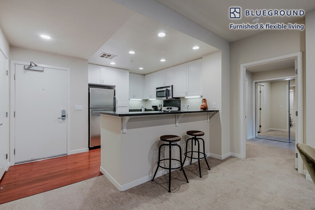 Discover the best of Santa Clara, with this two bedroom apartment in Rivermark of Santa Clara. It’ll be easy to simply show up and start living in this furnished apartment with its fully equipped kitchen, living room, and our dedicated, on-the-ground support. (ID #SFO1771) The advertised rate of $3,920/month is the lowest available price, based on a 2 month(s) and 11 day(s) stay with a move-in date of October 22, 2025. If you’re looking for a 1-year stay, the rate is $6,030/month. Rates vary depending on the duration of stay, season, and other parameters. For exact pricing and additional pricing components, please visit our website and enter your desired move-in and move-out dates. The rate is applicable when billed upfront; it can be higher if billed in multiple payments. Brokers are welcome to reach out. Were you looking for an unfurnished lease? Try Blueground instead and upgrade from unfurnished to furnished living: - Furnished at rates comparable to unfurnished - No setup or furniture costs - save thousands - Move-in ready - save time, just bring your suitcase Designed with you in mind Thoughtfully designed with bespoke finishes, modern furnishings, and a fully equipped kitchen, you’ll enjoy that “I’m home” feeling with this Blueground apartment. Whether you’re lounging in your cozy living room streaming the latest and greatest entertainment on the smart TV or premium wireless speaker, or getting some well-earned rest on the superior quality mattress with luxury linens, you’ll fall in love with everything this Rivermark of Santa Clara apartment has to offer. This apartment also offers in-apartment laundry. Sleeping arrangements King Bed, 70.8in/180cm King Bed, 70.8in/180cm Amenities Building amenities unique to this two bedroom apartment include an on-site: - BBQ Area - Dryer - Elevator - Swimming pool - Washing machine - Media room - Parking - Pets allowed Arrival and ongoing support The entire apartment is yours to enjoy! Throughout your stay, you’ll have access to our Client Experience team through the Blueground App. You can schedule additional cleanings, submit maintenance requests, and view our neighborhood recommendations with just a few taps. We’ll share all details upon confirmation of your stay. Other things to note Building amenities may have an extra cost. This Blueground apartment has flexible lease options, allowing you to book it for one month, a year, or more. Pets are welcome, though weight limits and breed restrictions apply and may incur fees. Parking is offered based on availability and is subject to a fee. We take great pride in ensuring every photo displayed is shot in our own units with our actual furnishings. That said, we regularly refresh our decor and furniture arrangement, which may differ from what’s pictured. [SI]