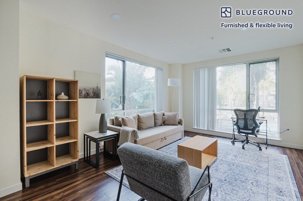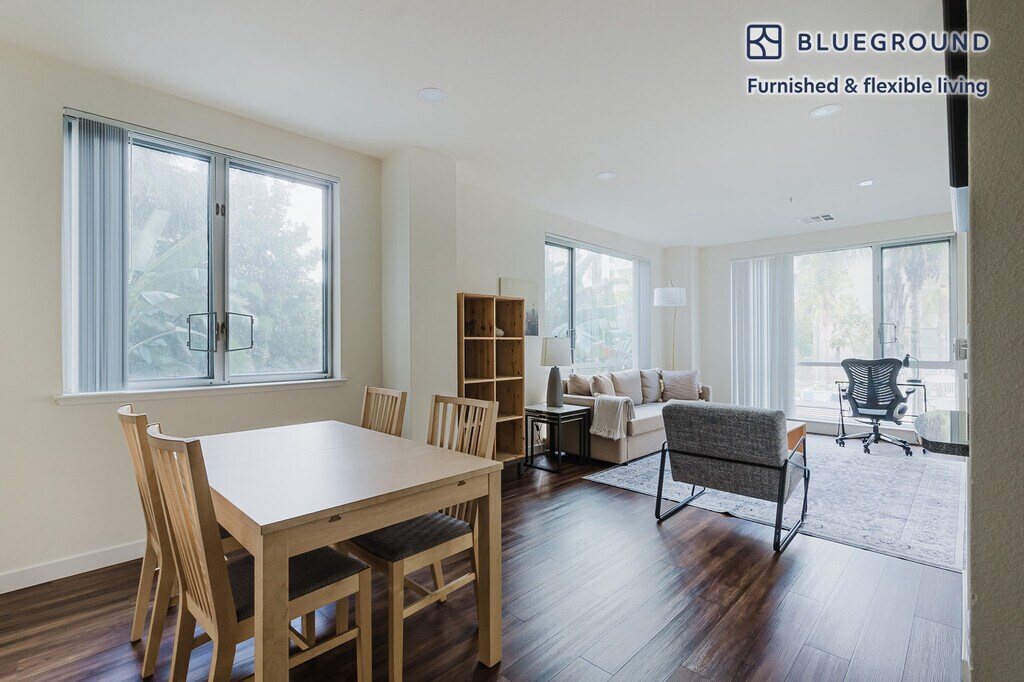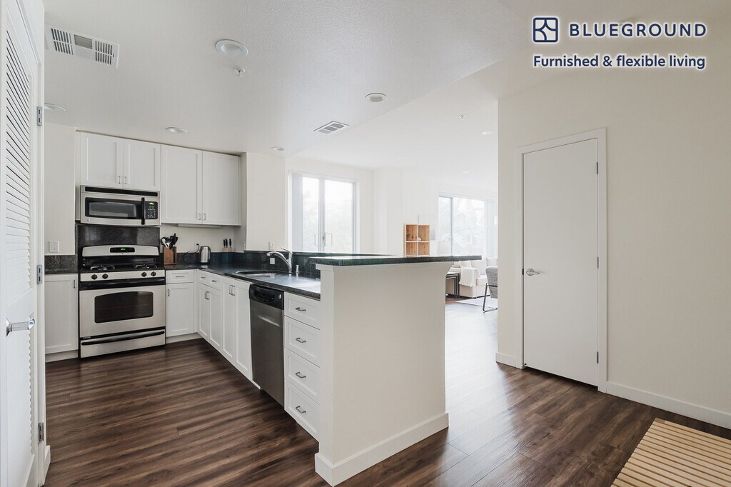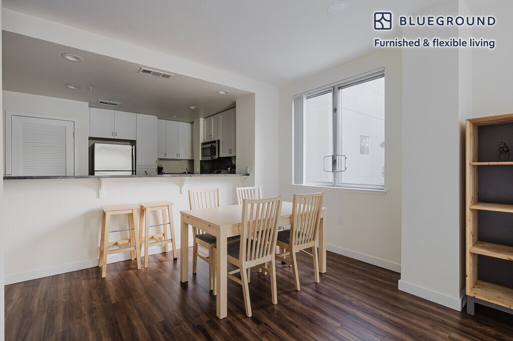 Show up and start living from day one in Santa Clara with this lovely one bedroom Blueground apartment. You’ll love coming home to this thoughtfully furnished, beautifully designed, and fully equipped Rivermark of Santa Clara home. (ID #SFO1770) The advertised rate of $3,230/month is the lowest available price, based on a 2 month(s) and 26 day(s) stay with a move-in date of January 24, 2026. If you’re looking for a 1-year stay, the rate is $3,710/month. Rates vary depending on the duration of stay, season, and other parameters. For exact pricing and additional pricing components, please visit our website and enter your desired move-in and move-out dates. The rate is applicable when billed upfront; it can be higher if billed in multiple payments. Brokers are welcome to reach out. Were you looking for an unfurnished lease? Try Blueground instead and upgrade from unfurnished to furnished living: - Furnished at rates comparable to unfurnished - No setup or furniture costs - save thousands - Move-in ready - save time, just bring your suitcase Designed with you in mind Thoughtfully designed with bespoke finishes, modern furnishings, and a fully equipped kitchen, you’ll enjoy that “I’m home” feeling with this Blueground apartment. Whether you’re lounging in your sophisticated living room streaming the latest and greatest entertainment on the smart TV or premium wireless speaker, or getting some well-earned rest on the superior quality mattress with luxury linens, you’ll fall in love with everything this Rivermark of Santa Clara apartment has to offer. This apartment also offers in-apartment laundry. Sleeping arrangements King Bed, 70.8in/180cm Amenities Building amenities unique to this one bedroom apartment include an on-site: - BBQ Area - Dryer - Elevator - Swimming pool - Washing machine - Media room - Parking - Pets allowed Arrival and ongoing support The entire apartment is yours to enjoy! Throughout your stay, you’ll have access to our Client Experience team through the Blueground App. You can schedule additional cleanings, submit maintenance requests, and view our neighborhood recommendations with just a few taps. We’ll share all details upon confirmation of your stay. Other things to note Building amenities may have an extra cost. This Blueground apartment has flexible lease options, allowing you to book it for one month, a year, or more. Pets are welcome, though weight limits and breed restrictions apply and may incur fees. Parking is offered based on availability and is subject to a fee. We take great pride in ensuring every photo displayed is shot in our own units with our actual furnishings. That said, we regularly refresh our decor and furniture arrangement, which may differ from what’s pictured. [SI]