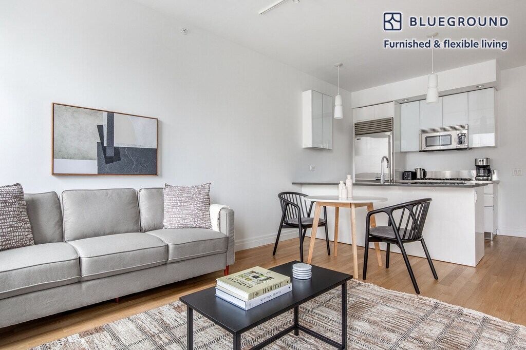 Discover the best of New York, with this one bedroom apartment in Hell's Kitchen with high floor views over the city. It’ll be easy to simply show up and start living in this furnished apartment with its fully equipped kitchen, living room, and our dedicated, on-the-ground support. (ID #NYC1458) The advertised rate of $5,080/month is the lowest available price, based on a 2 month(s) and 22 day(s) stay with a move-in date of October 27, 2025. If you’re looking for a 1-year stay, the rate is $5,450/month. Rates vary depending on the duration of stay, season, and other parameters. For exact pricing and additional pricing components, please visit our website and enter your desired move-in and move-out dates. The rate is applicable when billed upfront; it can be higher if billed in multiple payments. Brokers are welcome to reach out. Were you looking for an unfurnished lease? Try Blueground instead and upgrade from unfurnished to furnished living: - Furnished at rates comparable to unfurnished - No setup or furniture costs - save thousands - Move-in ready - save time, just bring your suitcase Designed with you in mind As with any Blueground apartment, you’ll find a thoughtfully designed space complete with beautiful furniture and a fully equipped kitchen in this one bedroom property. And, thanks to our superior quality mattresses, luxury linens, and towels, you can relax knowing you’ll always feel comfortably at home. When you’re ready for some fun, you can take in the New York vibes or bring the entertainment to you with the premium wireless speaker or smart TV. This apartment also offers in-apartment laundry. Sleeping arrangements Queen Bed, 63in/160cm Amenities Building amenities unique to this one bedroom apartment include an on-site: - Doorman - Dryer - Elevator - Washing machine - Pets allowed Arrival and ongoing support The entire apartment is yours to enjoy! Throughout your stay, you’ll have access to our Client Experience team through the Blueground App. You can schedule additional cleanings, submit maintenance requests, and view our neighborhood recommendations with just a few taps. We’ll share all details upon confirmation of your stay. Other things to note This Blueground apartment has flexible lease options, allowing you to book it for one month, a year, or more. Pets are welcome, though weight limits and breed restrictions apply and may incur fees. Brokes CYOF. We take great pride in ensuring every photo displayed is shot in our own units with our actual furnishings. That said, we regularly refresh our decor and furniture arrangement, which may differ from what’s pictured.
