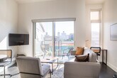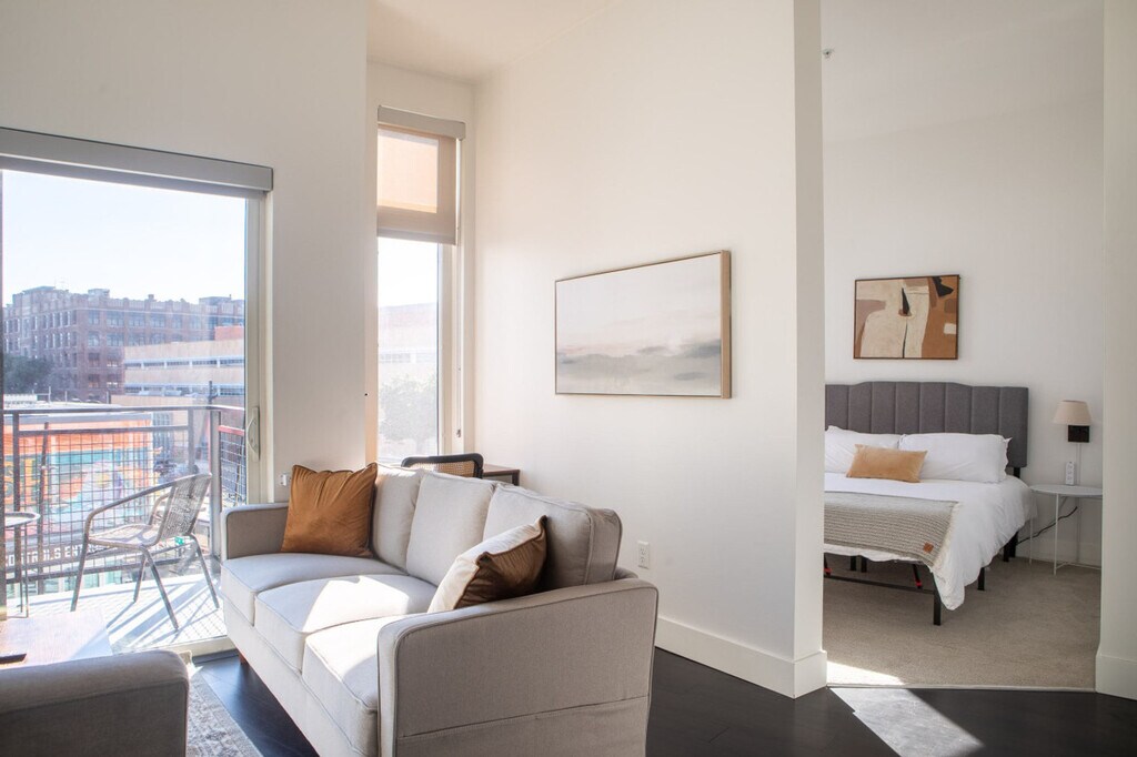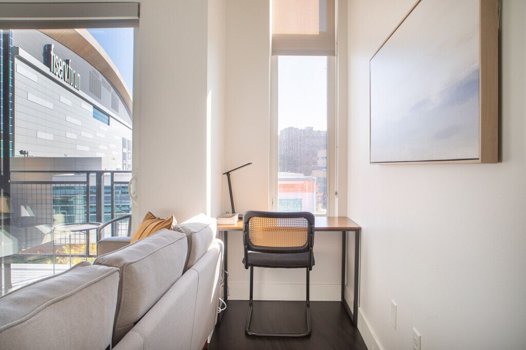 The advertised rate of $3,858/month is the lowest available price, based on a 30 day(s) stay with a move-in date of May 18, 2026. Rates vary depending on the duration of stay, season, and other parameters. For exact pricing and additional pricing components, please visit our website and enter your desired move-in and move-out dates. The rate is applicable when billed upfront; it can be higher if billed in multiple payments. Feel at home in this apartment featuring direct access to the Fiserv Forum through an attached skywalk. The space comfortably sleeps two with a queen-size bed. Amenities include a shared fitness center, a shared rooftop patio and lounge, a private balcony, in-unit laundry, a smart TV with built-in Airplay, an iron, and a Keurig. The sofa may serve as additional sleeping space, however please note it does not have a pull-out bed. This apartment includes one free parking space in a secured parking garage (the 5th Street Parking Structure) which has direct and enclosed access to the building. Additional parking is available in the same garage and costs $20/day (and increases during events). Metered street parking is also available directly outside the building on Juneau. The garage has a vertical clearance of 8'2" which is enough for most consumer vehicles but may not accommodate larger vehicles such as RVs or full-size vans. Connected to the Fiserv Forum through an enclosed skywalk, this apartment is a 5-minute drive to Downtown, Third Ward, and Marquette University. It's also walkable to the Deer District, Water St. bars, and Pabst Brewery District. Some light will pass through the living room window from the Fiserv Forum's bright LED marquee sign across the street, while the bedroom window has both a roller shade and a curtain to effectively block light. There is some potential for traffic or other street noise due to the centrally located property. Disposable ear plugs are provided. No smoking of any kind is allowed anywhere on the premises including outdoor spaces ($150 fine will be assessed and additional fees for remediation may apply). Quiet time is after 10pm. Guests must cover the cost to replace unreturned access devices such as keys, key cards, fobs, or parking passes. Bookings by local guests are prohibited at this property. Guests who violate the house rules are liable for any associated damages, fees, or expenses and may be removed from the property without refund. Includes a dedicated workspace and high-speed Wi-Fi. [SI]