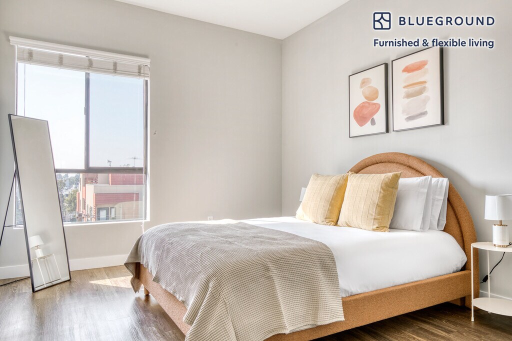 Feel at home wherever you choose to live with Blueground. You’ll love this charming North Hollywood furnished two bedroom apartment with its modern decor, fully equipped kitchen, and spacious living room with great balcony views. Ideally located, you’re close to all the best that Los Angeles has to offer! (ID #LAX921) The advertised rate of $3,060/month is the lowest available price, based on a 6 month(s) and 7 day(s) stay with a move-in date of February 27, 2026. If you’re looking for a 1-year stay, the rate is $3,460/month. Rates vary depending on the duration of stay, season, and other parameters. For exact pricing and additional pricing components, please visit our website and enter your desired move-in and move-out dates. The rate is applicable when billed upfront; it can be higher if billed in multiple payments. Brokers are welcome to reach out. Were you looking for an unfurnished lease? Try Blueground instead and upgrade from unfurnished to furnished living: - Furnished at rates comparable to unfurnished - No setup or furniture costs - save thousands - Move-in ready - save time, just bring your suitcase Designed with you in mind As with any Blueground apartment, you’ll find a thoughtfully designed space complete with beautiful furniture and a fully equipped kitchen in this two bedroom property. And, thanks to our superior quality mattresses, fully stocked linens, and towels, you can relax knowing you’ll always feel comfortably at home. When you’re ready for some fun, you can take in the Los Angeles vibes or bring the entertainment to you with the premium wireless speaker or smart TV. This apartment also offers in-apartment laundry. Sleeping arrangements King Bed, 70.8in/180cm Queen Bed, 63in/160cm Amenities Building amenities unique to this two bedroom apartment include an on-site: - BBQ Area - Dryer - Elevator - Swimming pool - Washing machine - Lounge - Parking - Pets allowed Arrival and ongoing support The entire apartment is yours to enjoy! Throughout your stay, you’ll have access to our Client Experience team through the Blueground App. You can schedule additional cleanings, submit maintenance requests, and view our neighborhood recommendations with just a few taps. We’ll share all details upon confirmation of your stay. Ideally Located This furnished apartment is located in North Hollywood, a trendy neighborhood in Los Angeles's San Fernando Valley. This highly desirable area has its own arts district as well as several playhouses. There are plenty of hip boutiques where you can shop for the latest fashions as well as convenient big box stores. It's easy to find a cool North Hollywood bar for a nightcap, and the neighborhood is known for great Mexican food. Although West Hollywood is walkable, most residents rely on cars to get to and from work. Other things to note Building amenities may have an extra cost. This Blueground apartment has flexible lease options, allowing you to book it for one month, a year, or more. Pets are welcome, though weight limits and breed restrictions apply and may incur fees. Parking is offered based on availability and is subject to a fee. We take great pride in ensuring every photo displayed is shot in our own units with our actual furnishings. That said, we regularly refresh our decor and furniture arrangement, which may differ from what’s pictured. Also note - There have been reported instances of homeless populations nearby - Noise from the nearby nightlife can sometimes be heard late at night - There is typically ample unrestricted street parking around this building [GO]