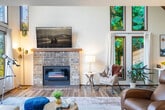 Escape to this cozy, pet-friendly contemporary haven, nestled among towering trees with breathtaking 20-foot floor-to-ceiling windows that let nature in. Located just a 5-minute drive from the vibrant Lake Forest Park Town Center, this 3-story house with 4 bedrooms and 2.5 bathrooms offers 2390 sqft of space. With a few steps to entry, you'll feel at home in this peaceful retreat. Sink into the comfort of the premium mattress, relax amid high-end furnishings, and enjoy a fully equipped kitchen for all your culinary needs. The main floor features a living room with a queen sofa bed, smart TV, kitchen, coffee bar, dining, office space, and half bath, along with a deck with outdoor furniture. The second floor includes a master loft bedroom with a king bed, a master bathroom with a bathtub and shower combo, and secret closets serving as a kid's bedroom with twin bunk beds and a playroom. The lower floor offers a second living room with a smart TV and dining area, two bedrooms with queen beds, and a hallway bathroom with a bathtub and shower combo. Enjoy the hot tub on the deck outside. Well-trained pets are welcome with a fee of $50 per night. The regular nightly rate covers 6 guests, with additional guest fees of $25 per person per night, up to a maximum of 8 guests. Located just a 5-minute drive from the vibrant Lake Forest Park Town Center, you'll have easy access to a variety of restaurants, cafes, and bars. For outdoor enthusiasts, the scenic trails of Saint Edward Park are just a quick drive away, perfect for a walk with your four-legged friend. The home is perfectly tucked away on a peaceful street, offering you the best of both worlds. The house sits at the end of a very long and steep driveway, with only two houses at the end. Drive carefully each way. This home has stairs and is not handicap friendly, requiring guests to be comfortable with multiple stories. The garage is not available for parking, but there is plenty of parking in the driveway. Strictly no parties and events, quiet hours between 10pm-8am, no smoking or vaping of any kind anywhere on the property including outdoor areas, no digital piracy, and no shoes in the home. A $500 fine applies per violation. Includes a dedicated workspace for remote work, ensuring you can stay productive during your stay. [SI]
