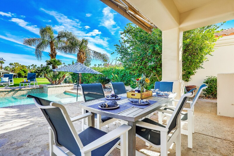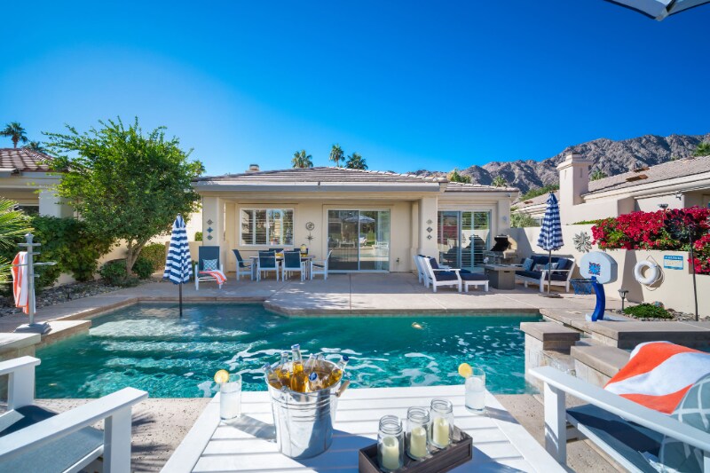 Property Id: 2024874 Welcome to Casa del Sol, located on the 2nd fairway of the PGA West Arnold Palmer course! This home has amazing wall-to-wall windows displaying the stunning private yard and views of the PGA West Palmer course! Soak in the sun during the day and stargaze at night from your elevated spa, private pool with tanning ledge and umbrella. Dine al fresco anytime under misters, a retractable awning, and a patio heater. Finish the evening off with a nightcap around the pebble glass fire pit. Your lifelong memories created here will make this your new home away from home. Security Deposit: A refundable security deposit is required and will be collected prior to your stay. Full details provided upon booking.
