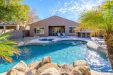 Welcome to Casa Stetson, a newly furnished private single-family home located in a quiet neighborhood of north Phoenix, just off highway 17. This one-level home, with no stairs, offers a spacious great room featuring a large couch and TV with cable channels, seamlessly connecting to a fully equipped kitchen with a breakfast bar and dining area. A sliding door leads to outdoor dining with views of the sparkling pool and hot tub. Casa Stetson provides a comfortable living space with a huge couch and TV in the great room, opening up to a fully equipped kitchen and dining area. The outdoor area features a pool, hot tub, four chaise lounge chairs for sunbathing, a built-in BBQ, and an outdoor bar, perfect for enjoying a cocktail while cooking. The pool can be heated for an additional charge of $350 per week or $1250 per month during the winter. A dog is allowed with approval, and a non-refundable pet fee will be added to your booking. There is a $400 per month electric cap during the summer months from June through September, with guests liable for any overages. Situated in a quiet neighborhood of north Phoenix, Casa Stetson offers easy access to highway 17, making it convenient to explore the surrounding area. Enjoy the tranquility of the neighborhood while being just a short drive away from local attractions and amenities. Guests are liable for any damages caused to the property. The heated spa can be used at your leisure. The property includes a laundry room with a full-size washer and dryer, a fully gated yard, and parking available in a 2-car garage and driveway. A desk is available in the living room for sending necessary work emails, providing a convenient space for remote work. [SI]